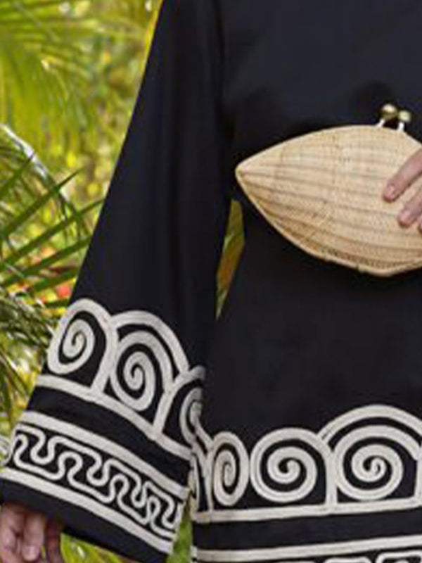 Flared Sleeves Embroidered Round-Neck Mini Dresses