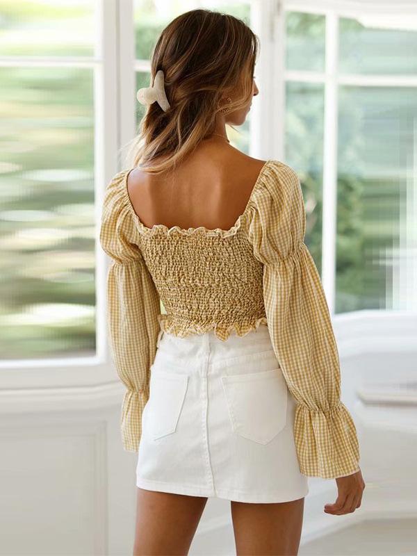 Flared Sleeves Printed Ruffled Square-neck T-shirt Top