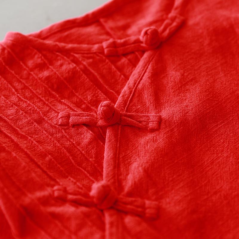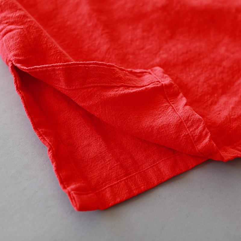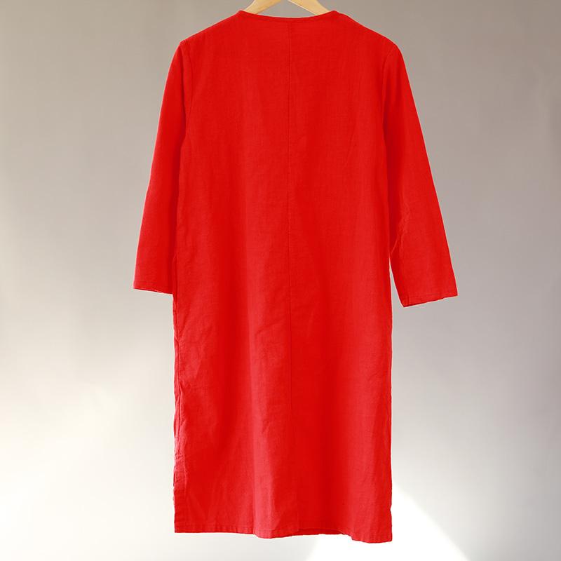 Flax Retro Long Sleeve Women Pleated Side Slit Dress