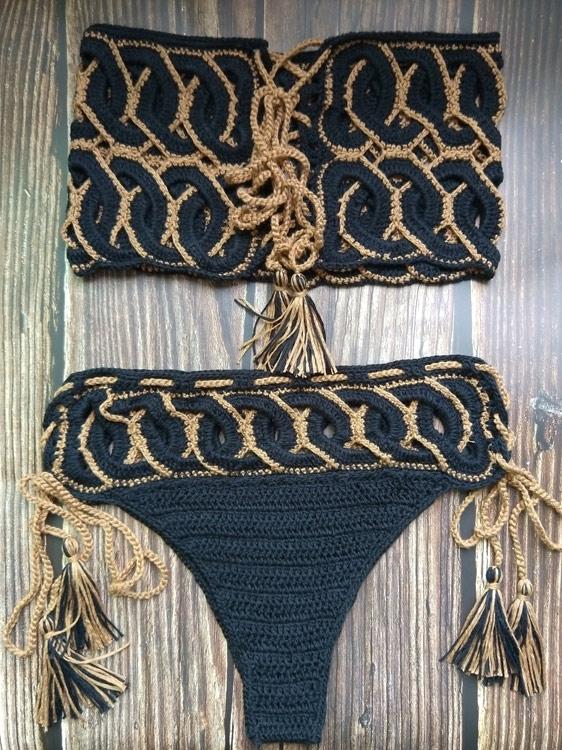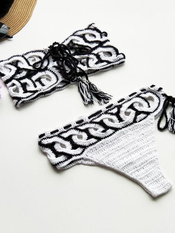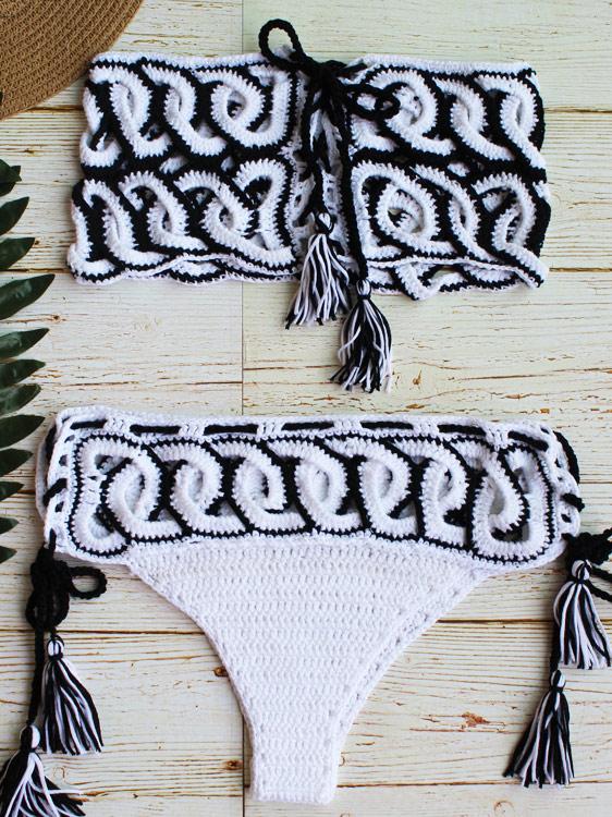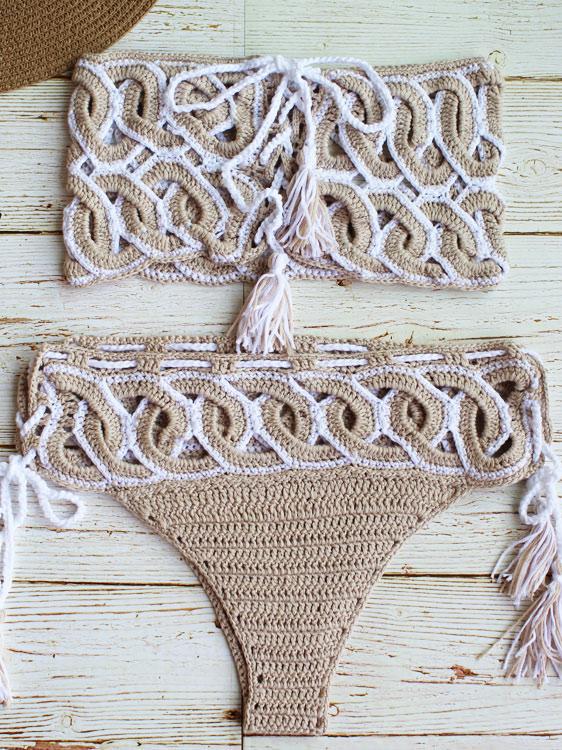 Flora Hollow Bandage Crochet Bikini Swimsuit