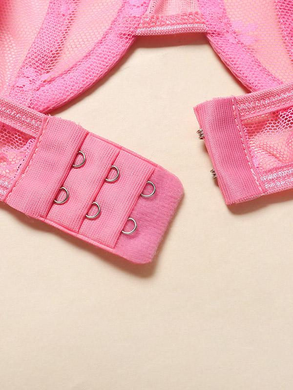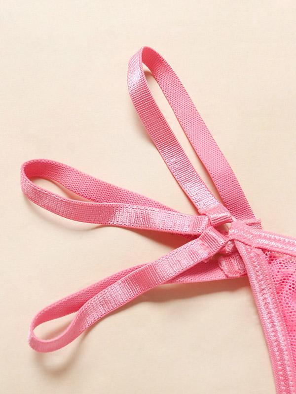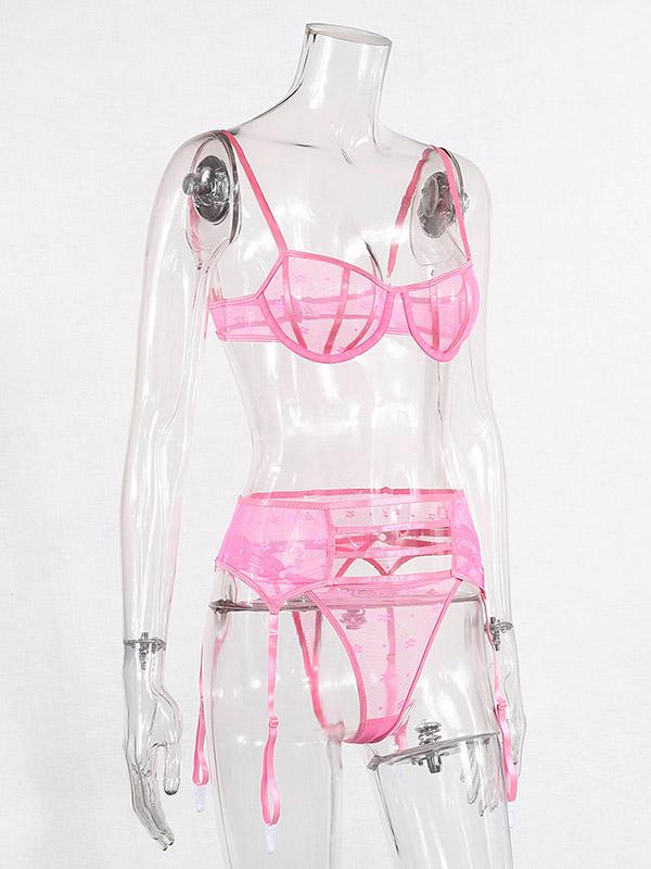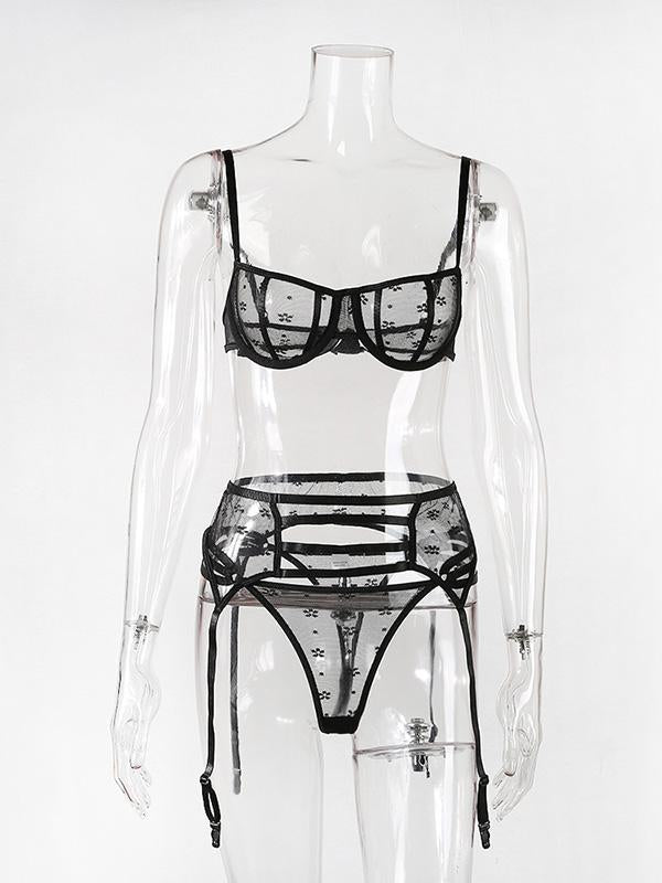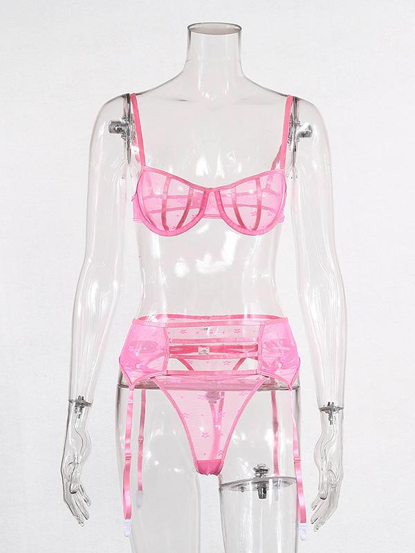 Flora Lace Bandage Three-Piece Bra Panty Garter Lingerie Set