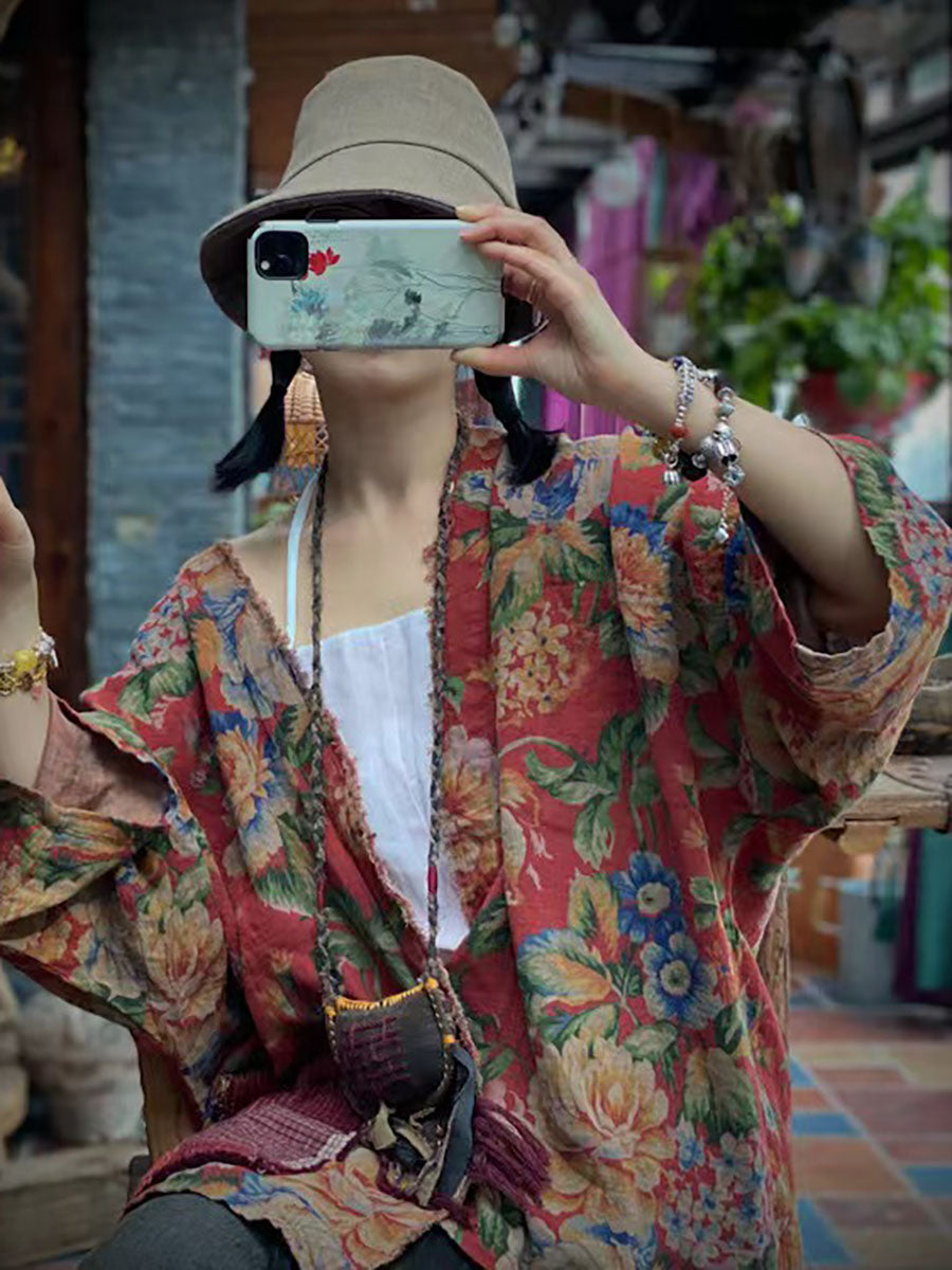 Plus Size Floral Autumn Women Loose Vintage Shirt