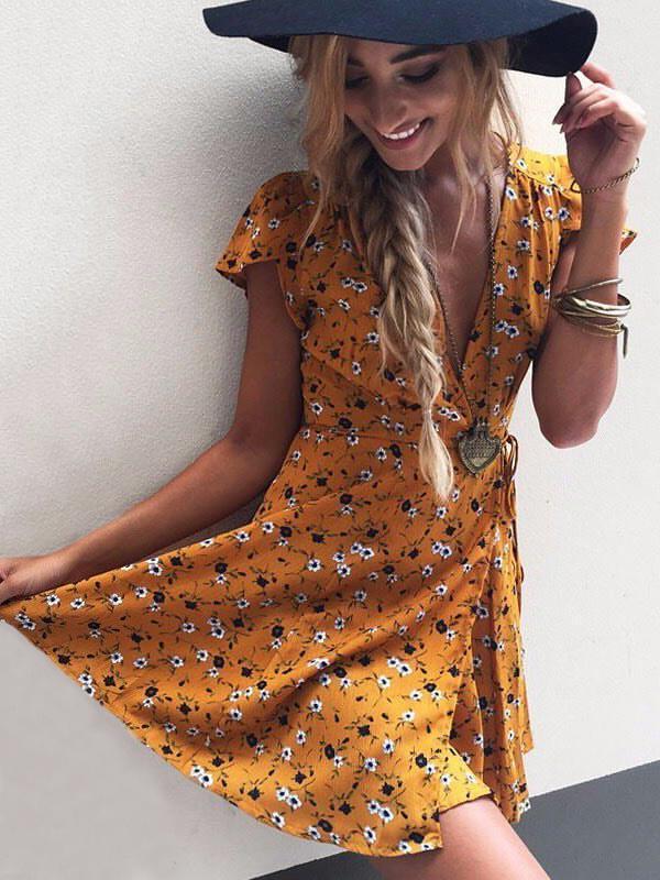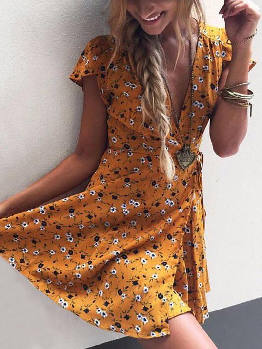 Floral Deep V-neck Mini Dress