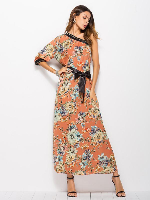 Floral One-shoulder Bohemia Maxi Dress