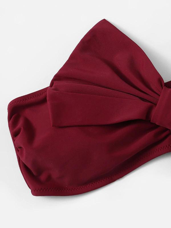 Floral-Print Bowknot Bandeau Split Bikini Swimsuit