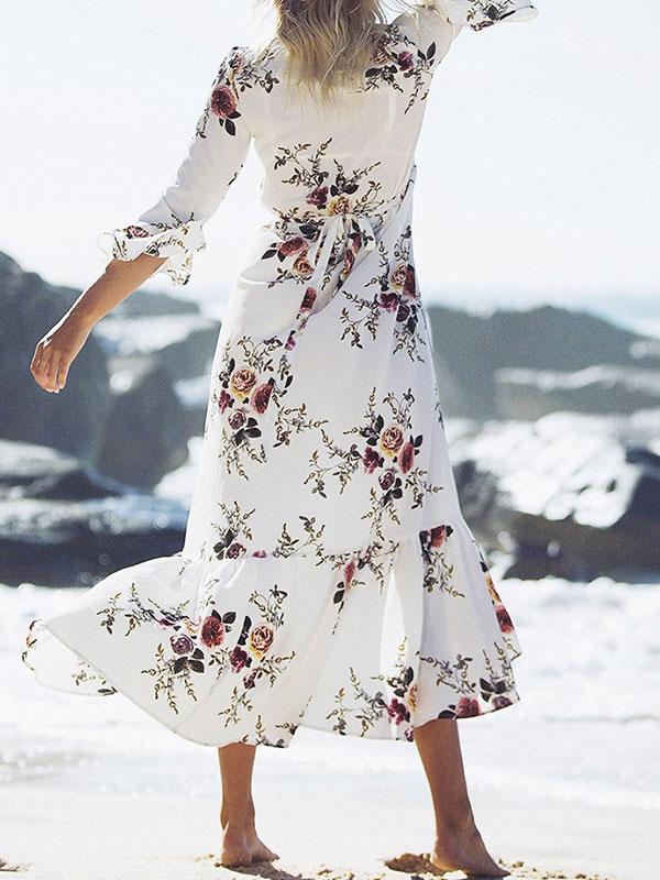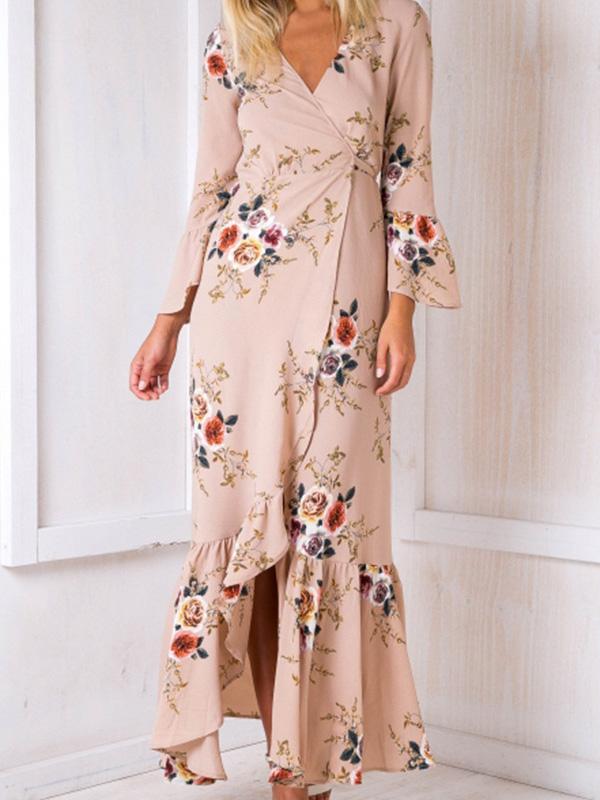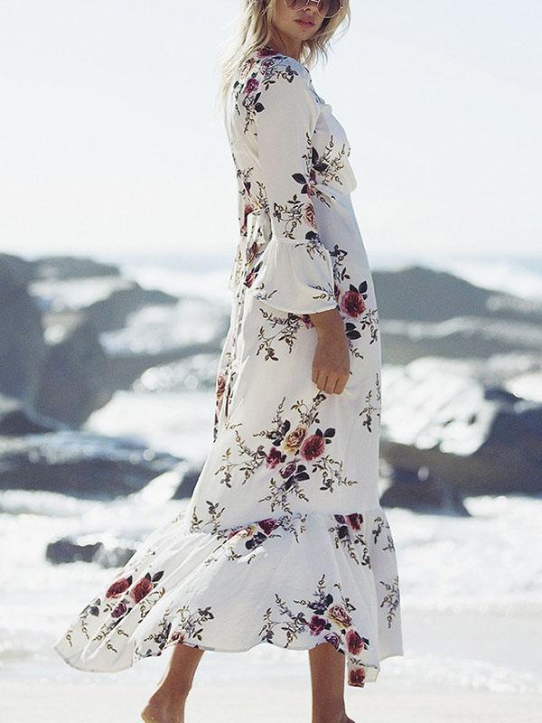 Floral-Print Long Sleeves Bohemia Maxi Dress
