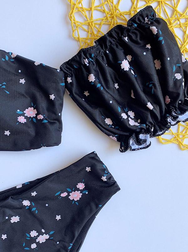 Floral-Print Off-The-Shoulder Split Bikini Swimsuit