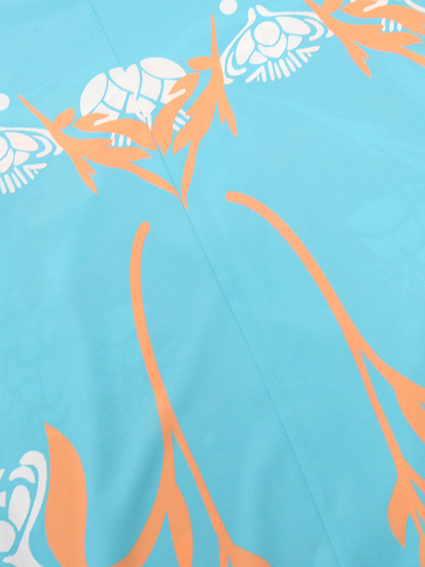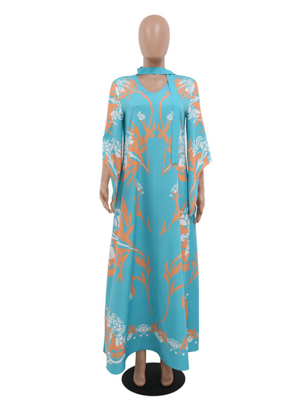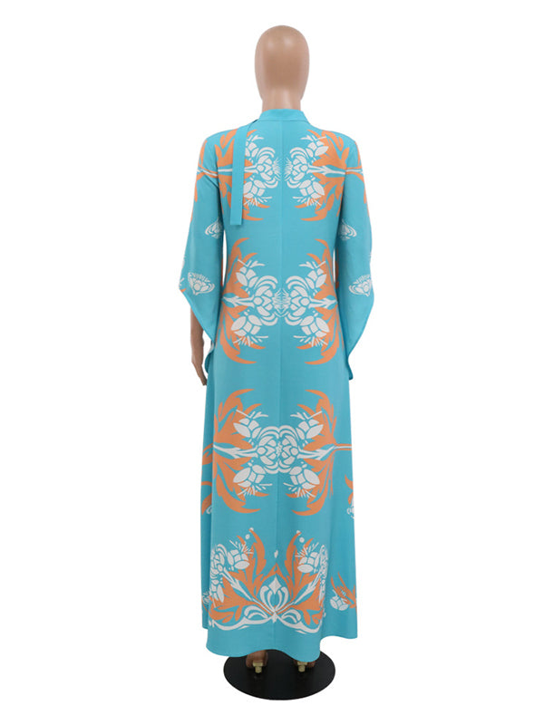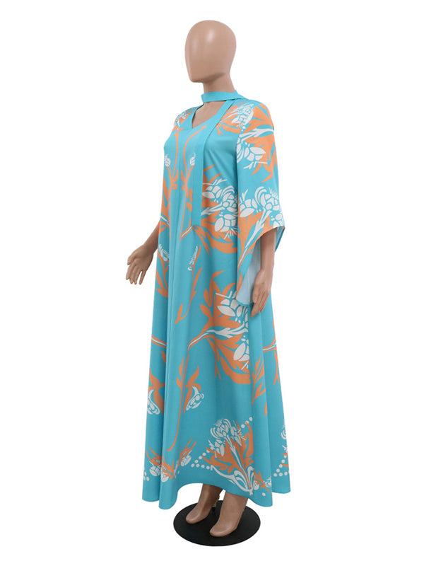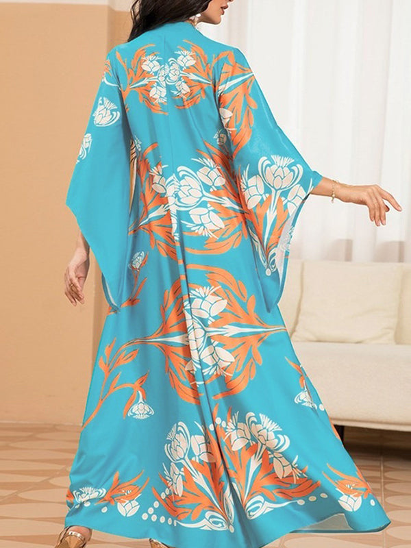 Floral Printed Batwing Sleeves Color-Block Muslim V-Neck Maxi Dresses