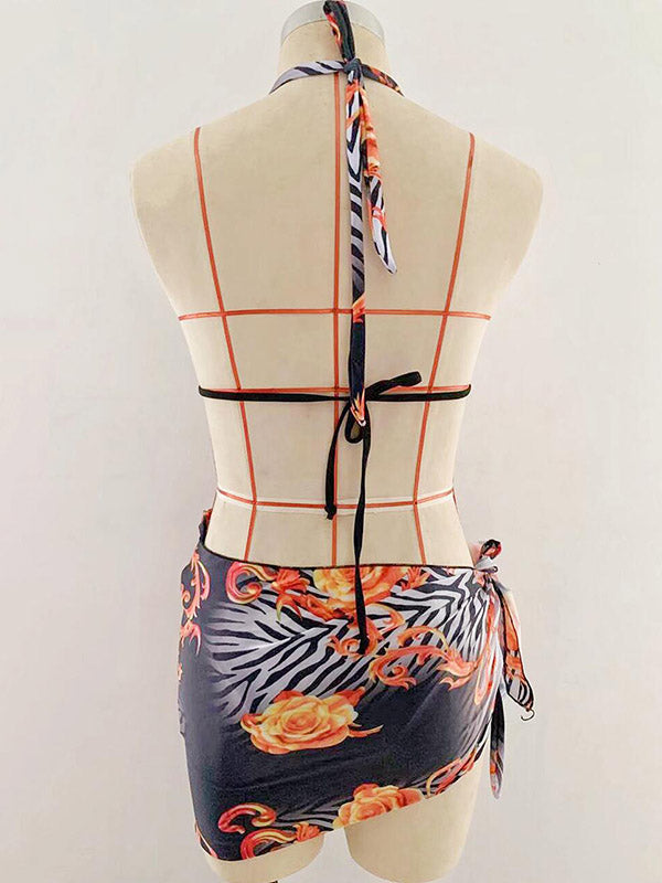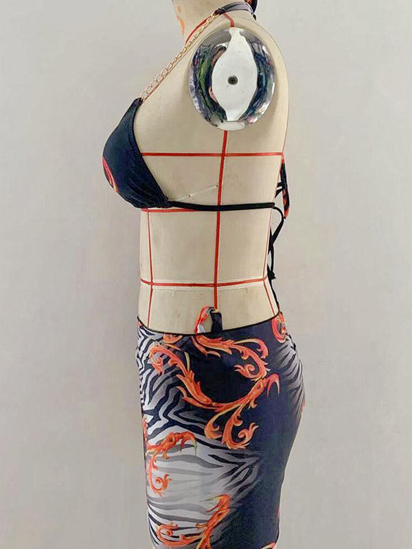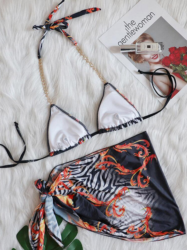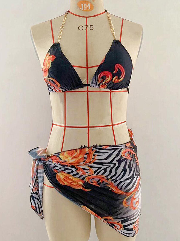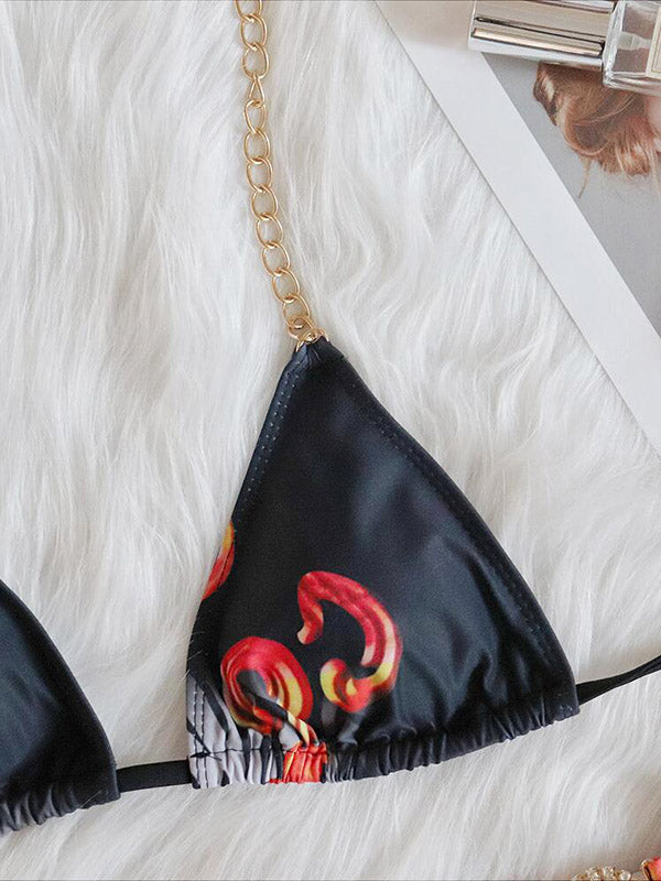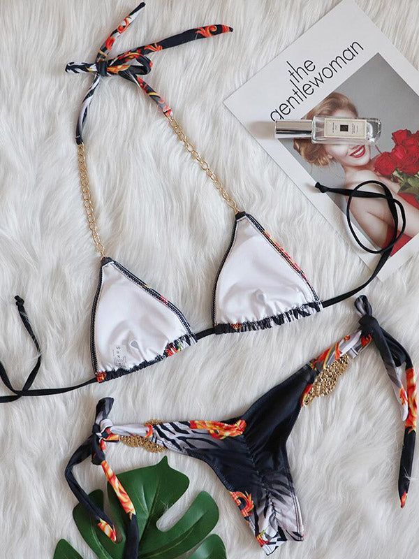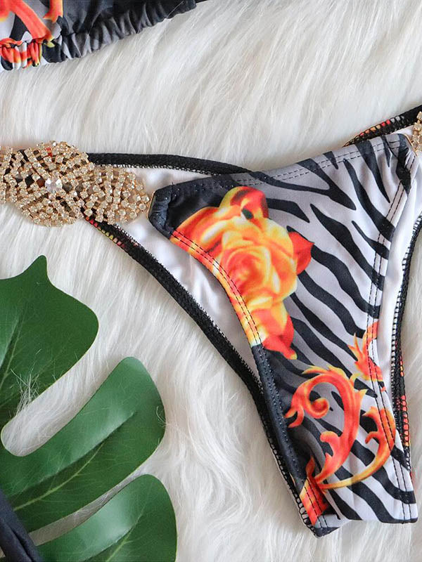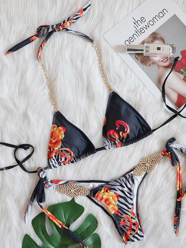 Floral Printed Beaded Decorated Triangle Bikini Swimwear