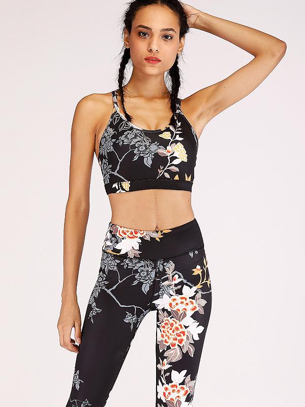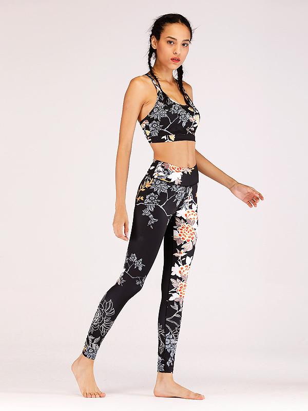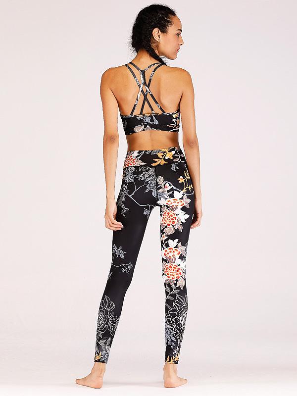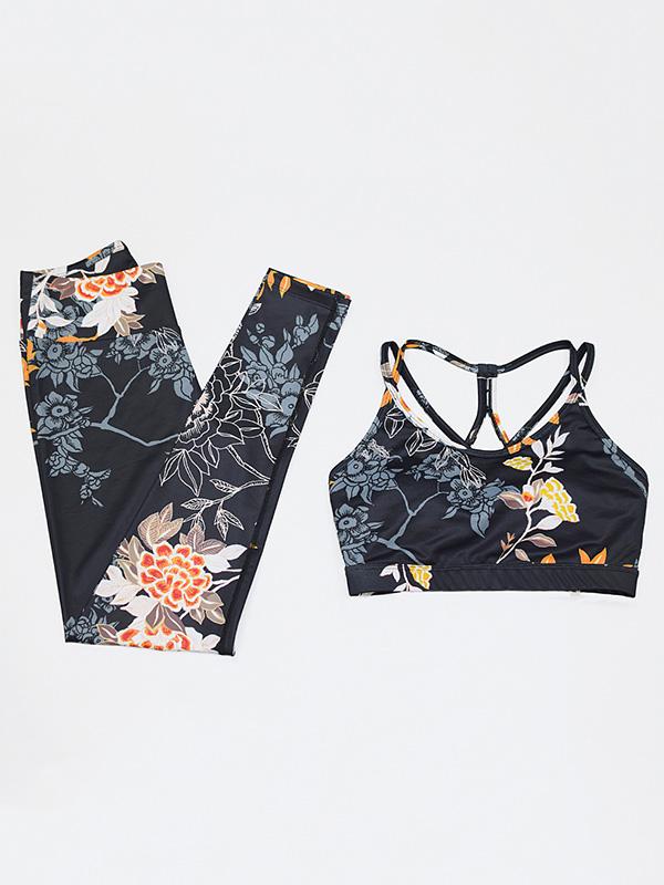 Floral Printed Spaghetti-neck Tank And Legging Yoga Suits