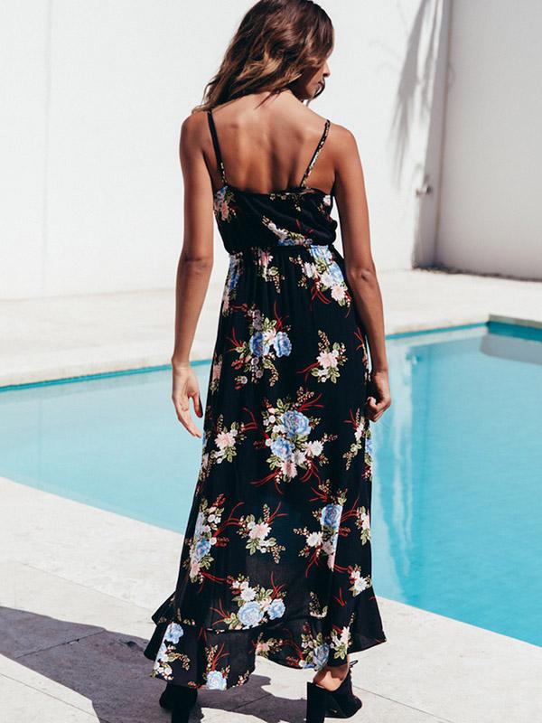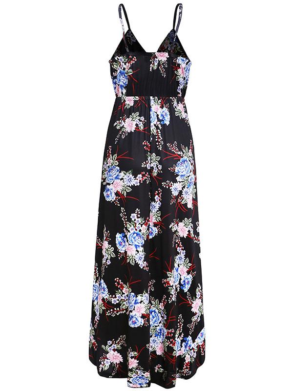 Floral Printed V-neck Sexy Maxi Dress