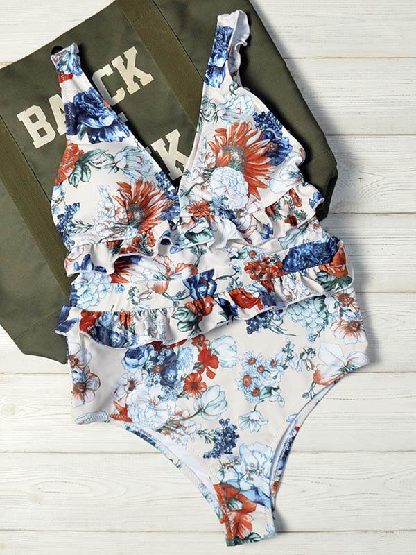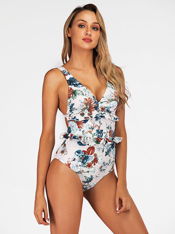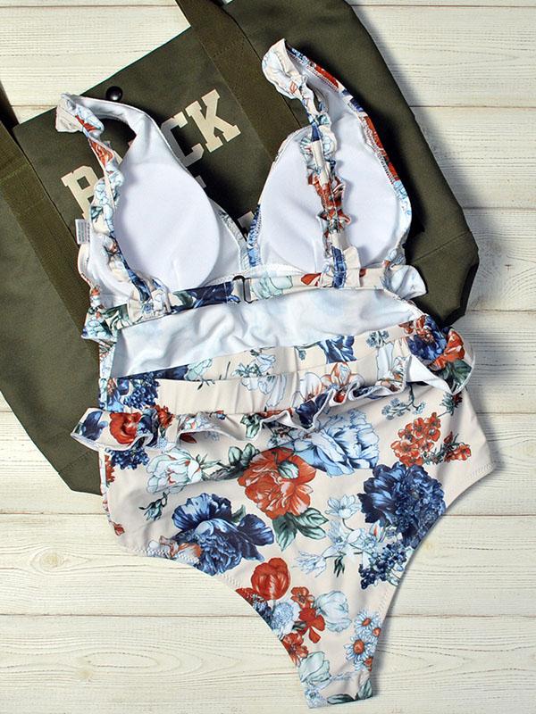 Floral Ruffle One Piece Swimsuit