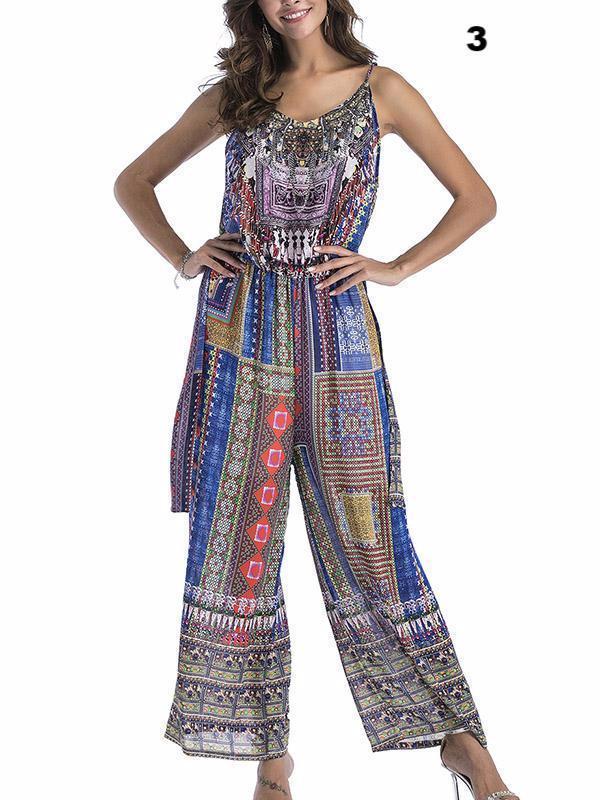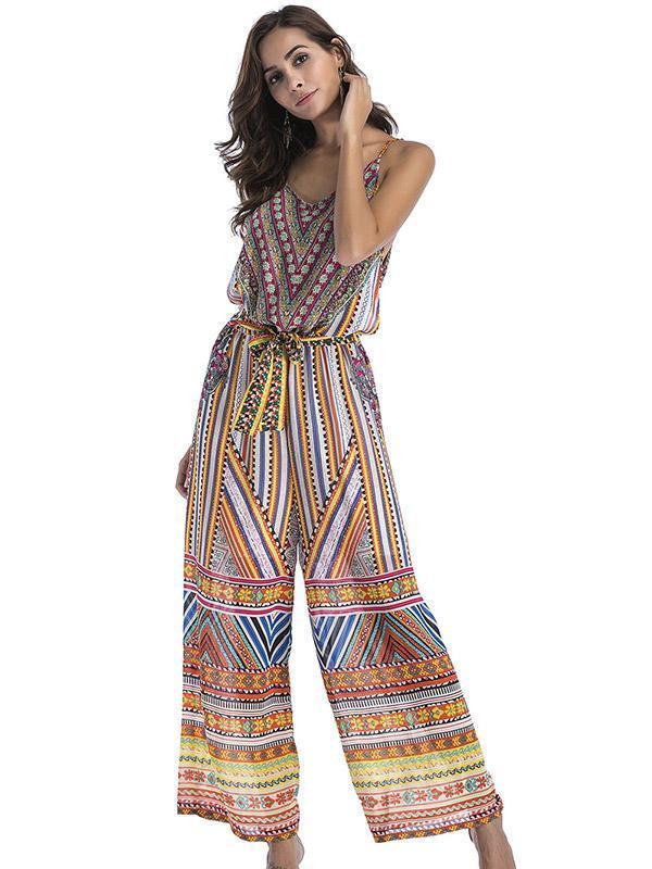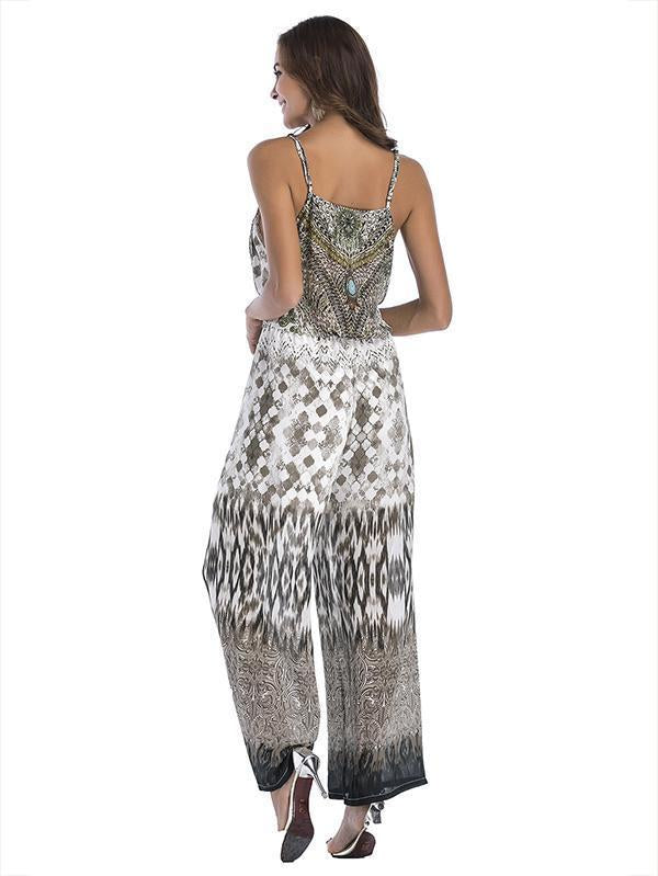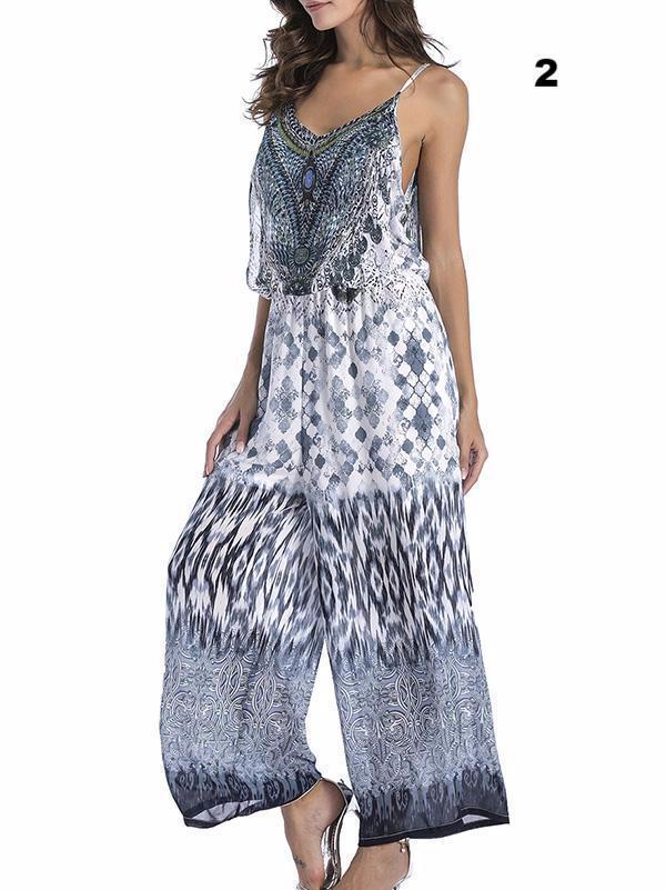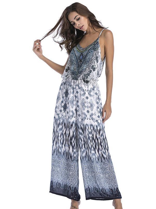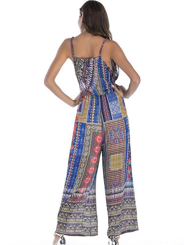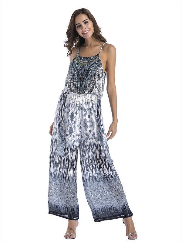Floral Spaghetti-neck Wide Leg Long Jumpsuits