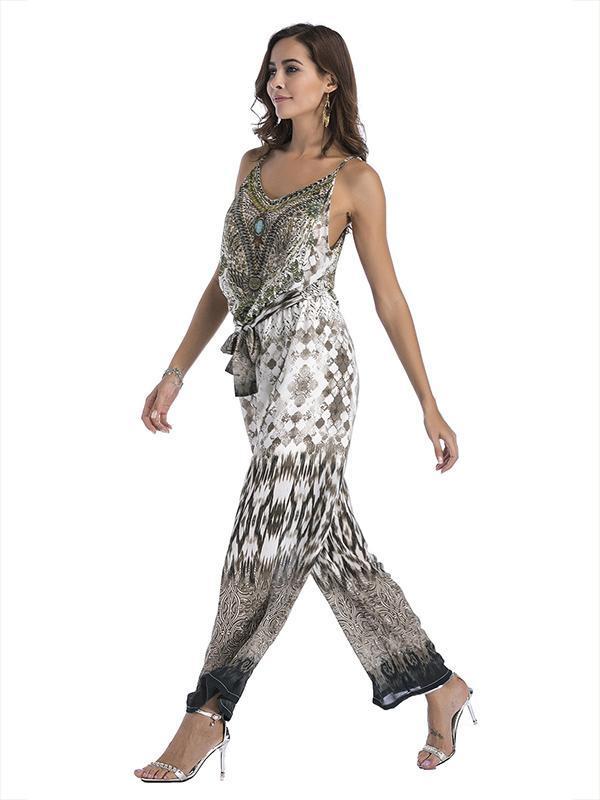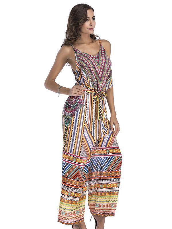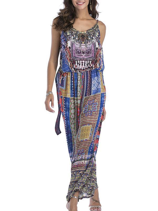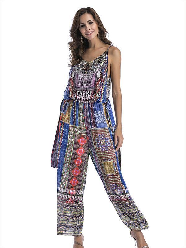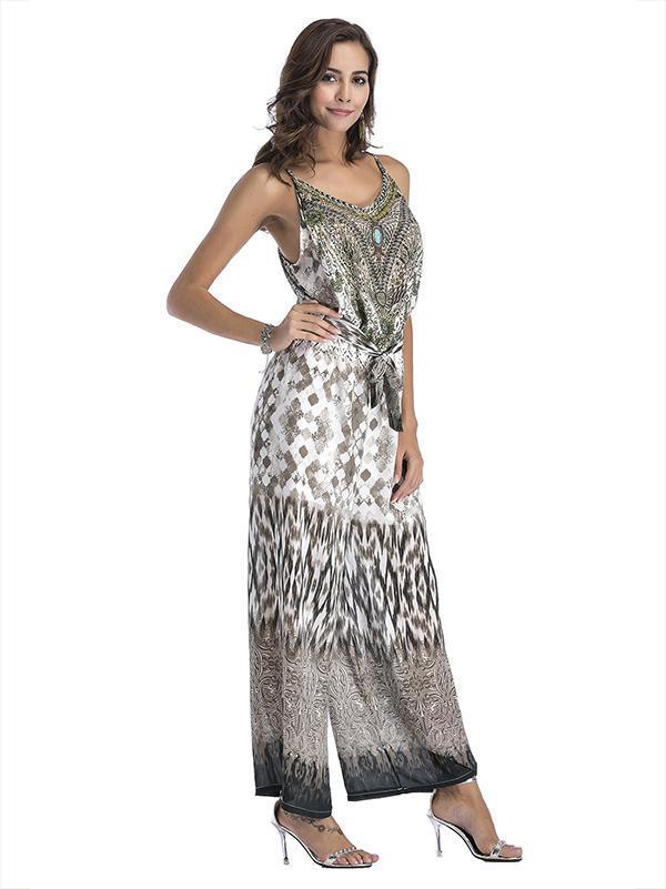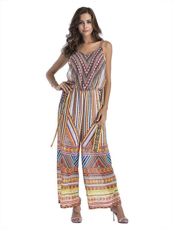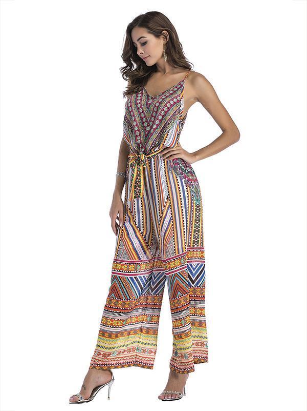 Floral Spaghetti-neck Wide Leg Long Jumpsuits