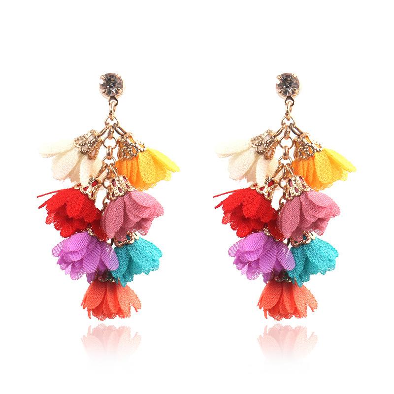 Flower earrings personality creative multi-layer tassel Bohemian national style Earrings Wholesale