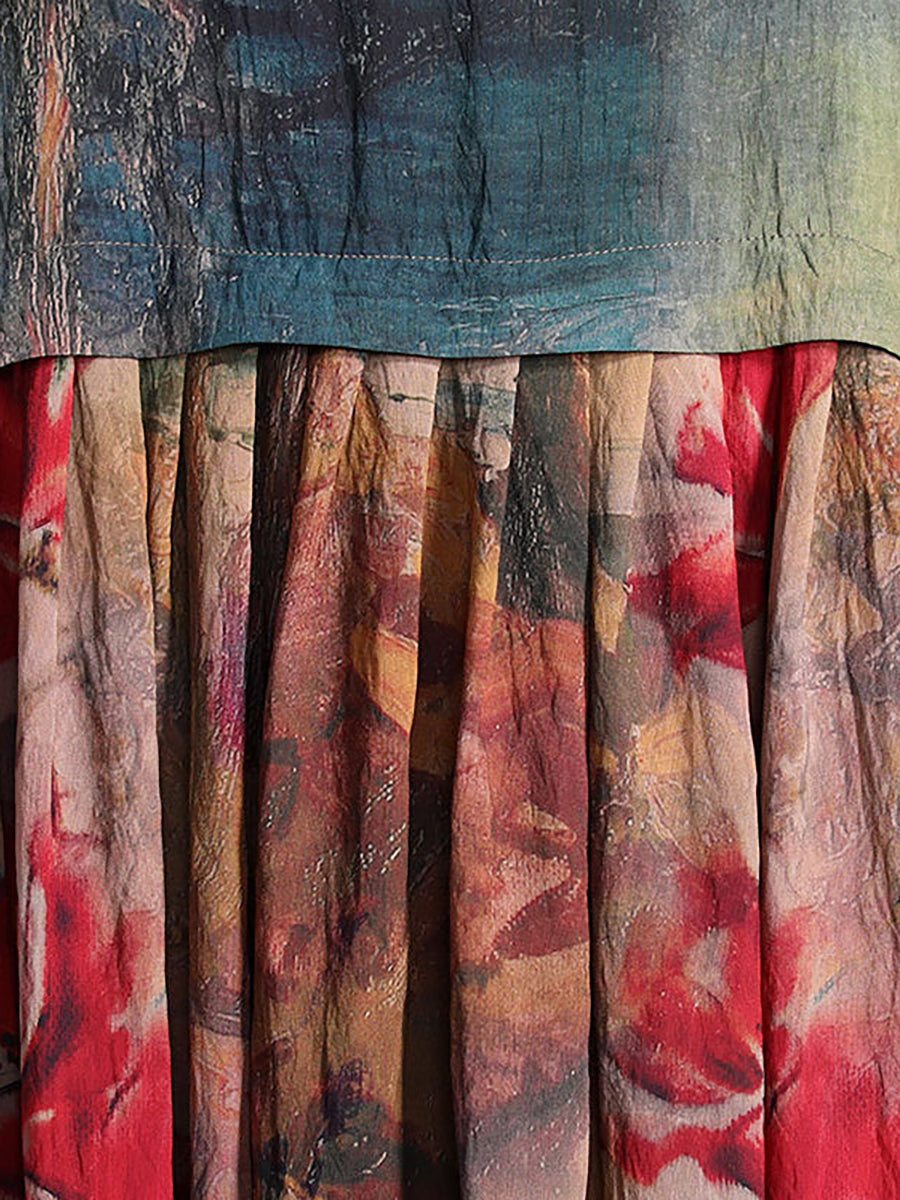 Plus Size Flower Printed Retro Split Hem Dress