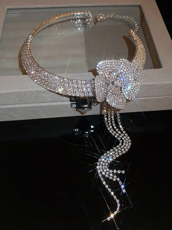 Flower Shape Rhine Stones Tasseled Necklaces Accessories