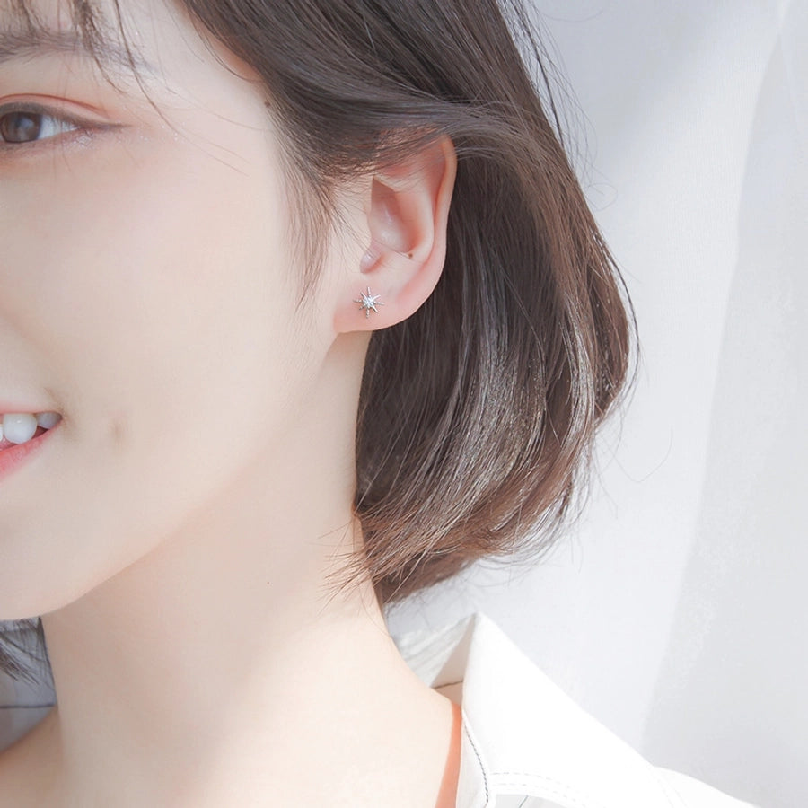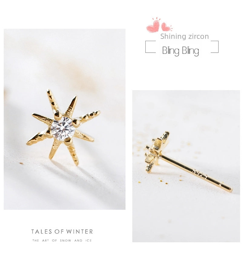 Ganjia new s925 sterling silver Korean version of super flash exquisite eight mans star earrings star female super fairy jewelry