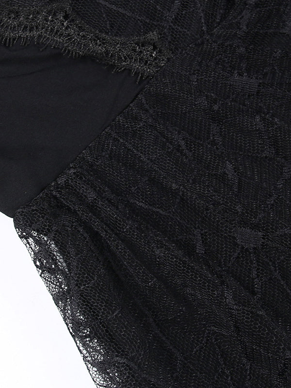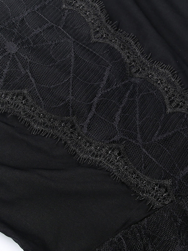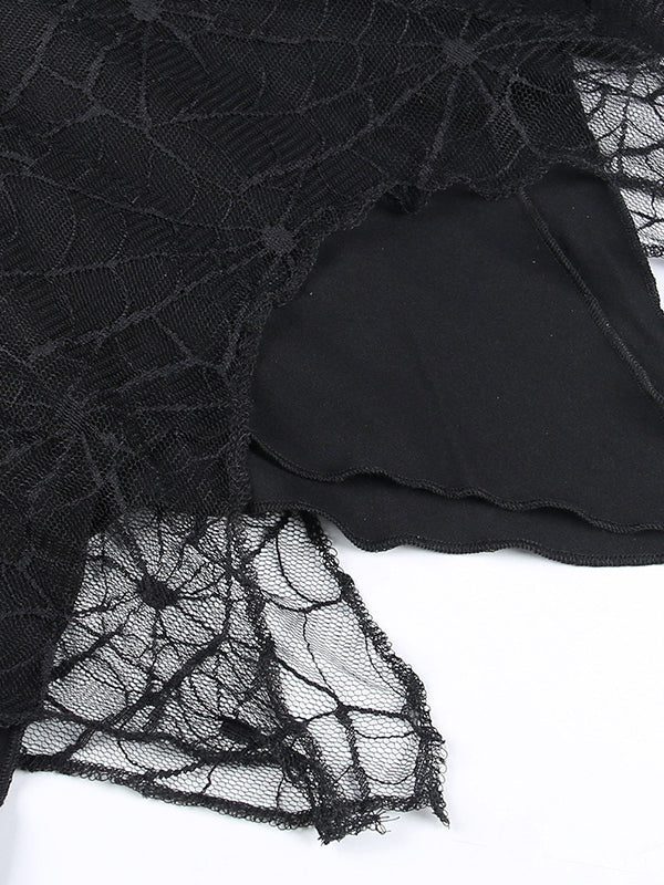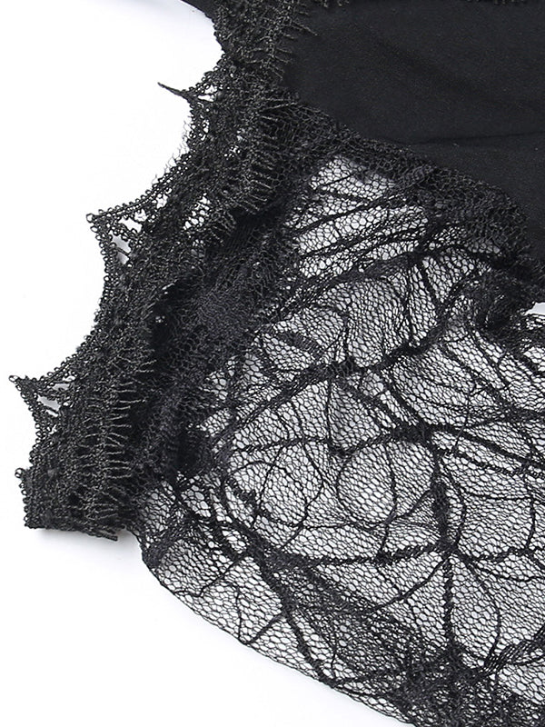 Halloween Gauze Solid Color Split-Joint Spaghetti-Neck Mini Dresses