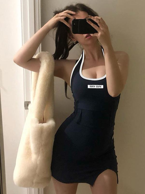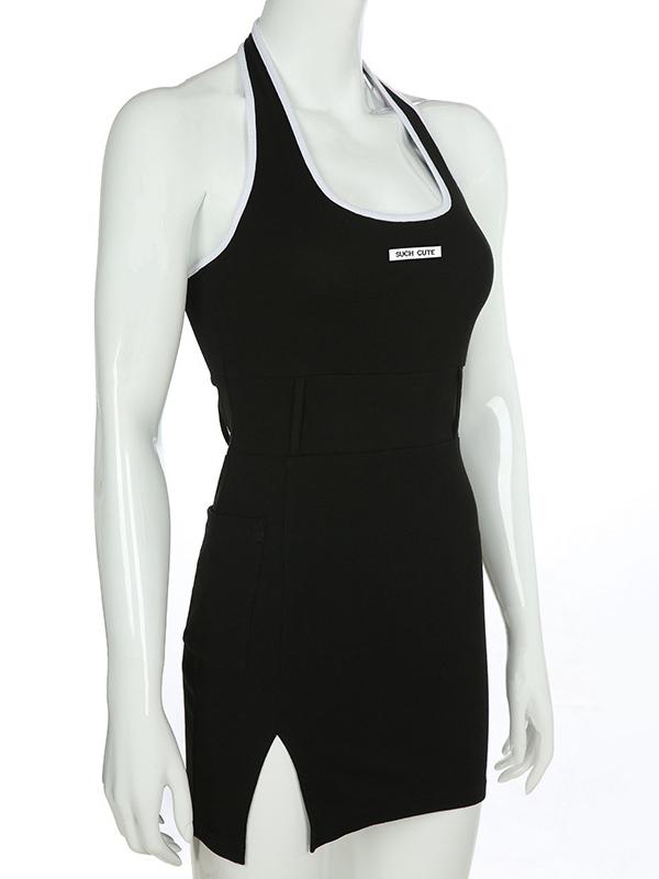 Halte-neck Printed Mini Dresses