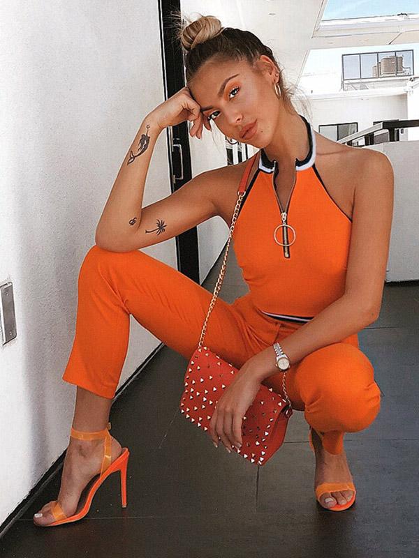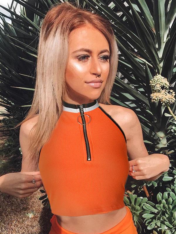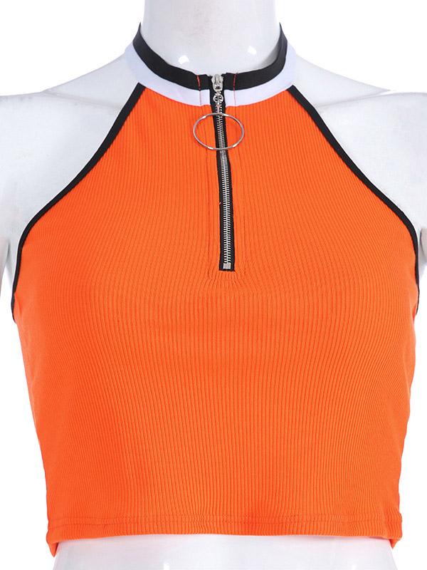 Halterneck Zipper Crop Tanks