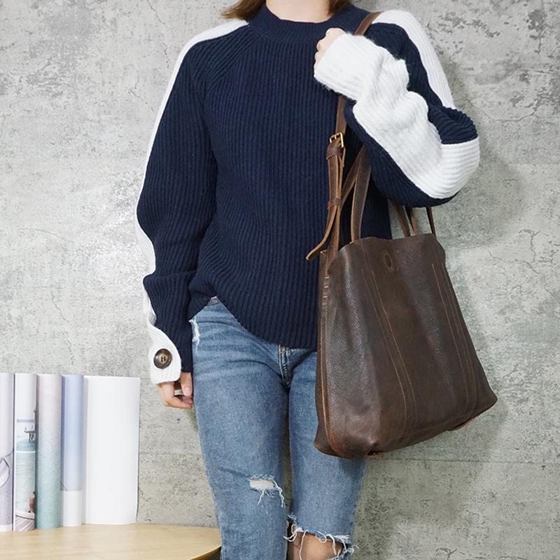 Hand Made Vintage Leather Magnetic Buckle Shoulder Bag