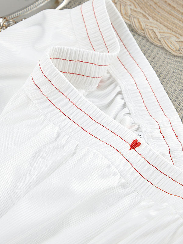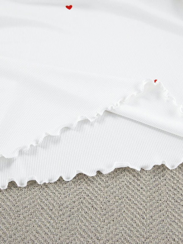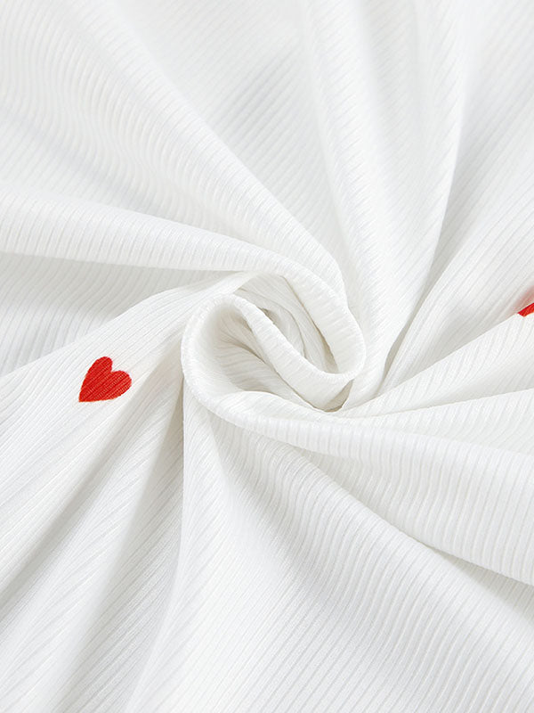 Heart Print Round-Neck Long Sleeves Tops + Elasticity High Waisted Pants Pajama Sets