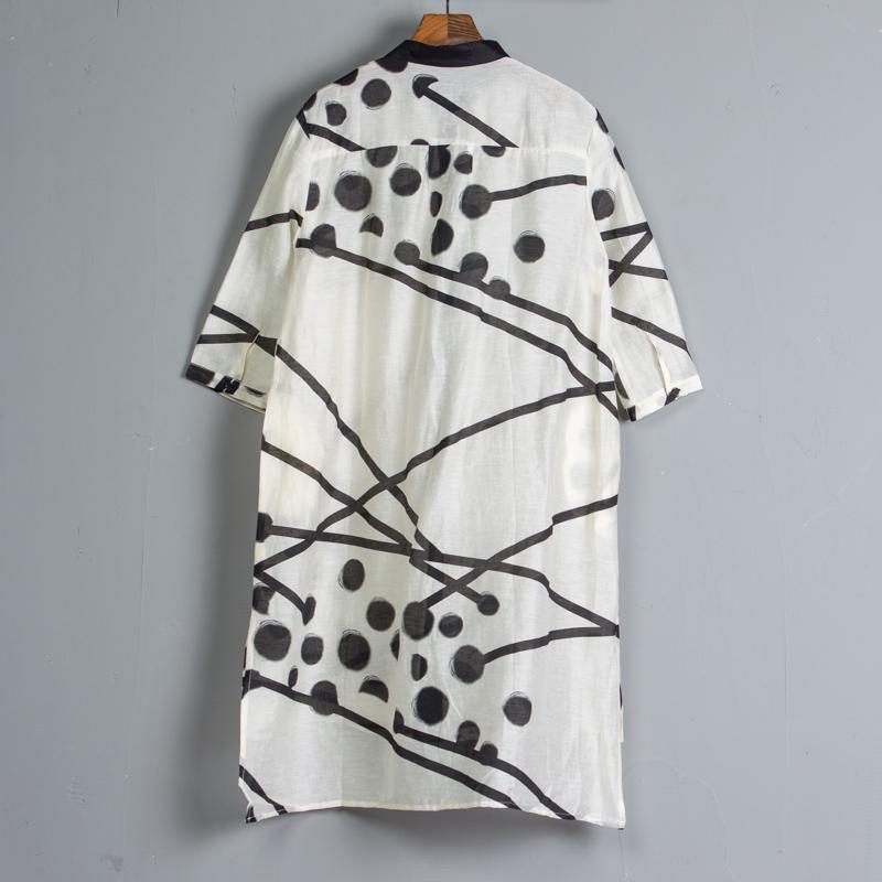 High-low Hem Three-quarter Sleeve Slit White Dress