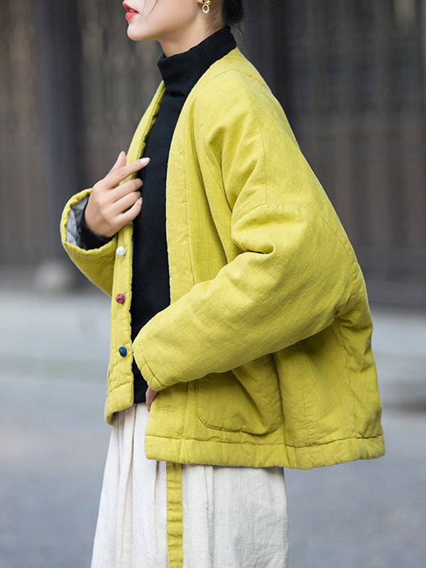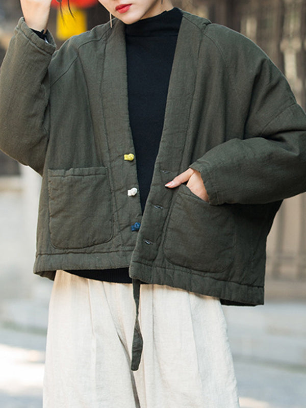 High-Low Long Sleeves Keep Warm Pockets Quilted Solid Color Split-Joint V-Neck Padded Coat