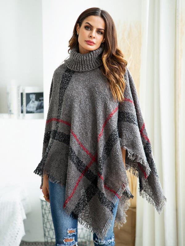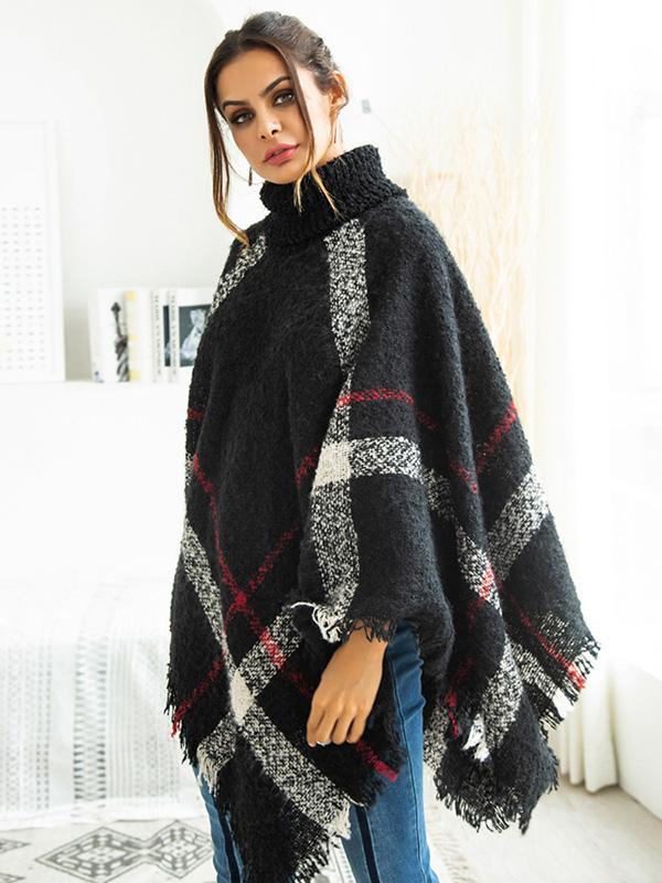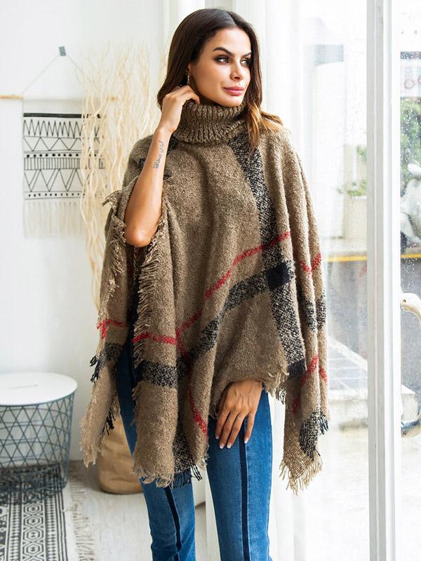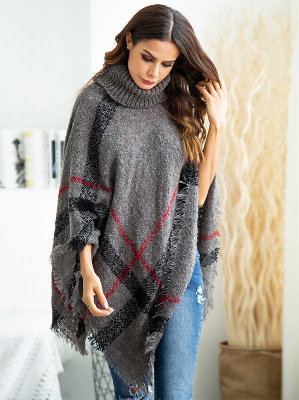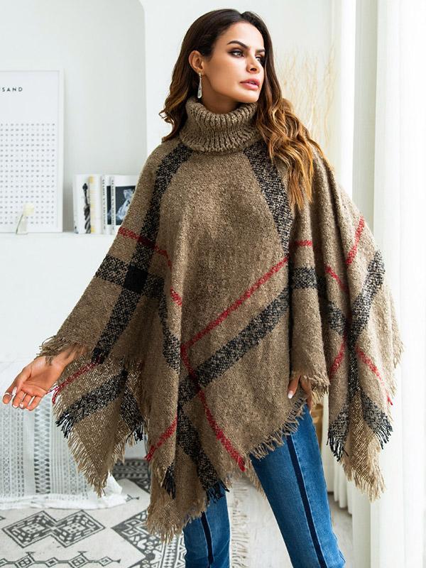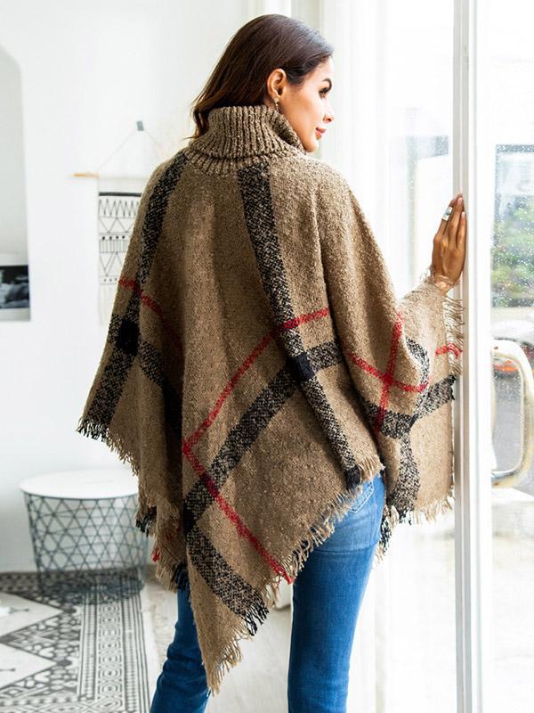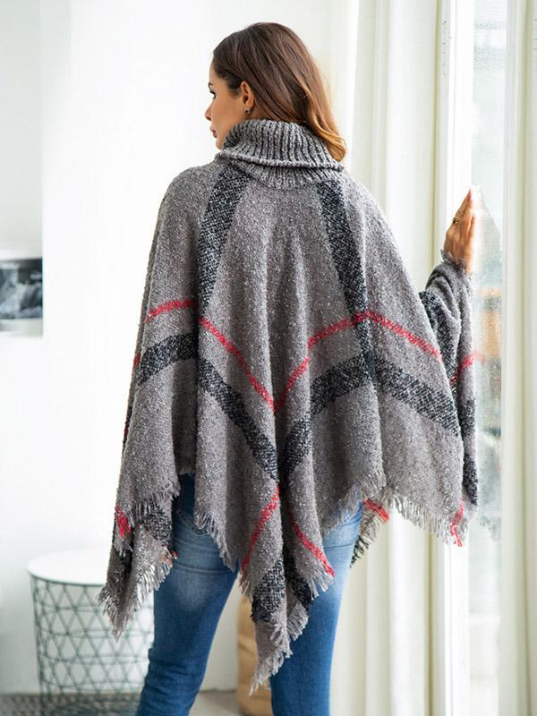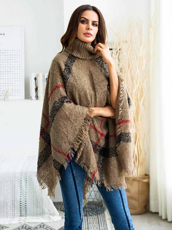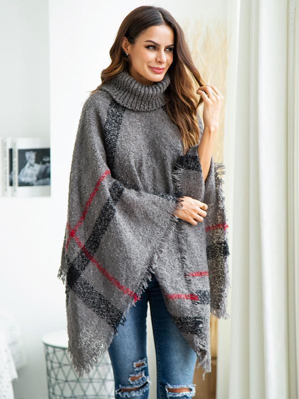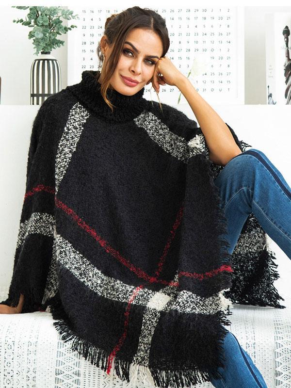 High-neck Batwing Sleeves Tassels Sweater Tops