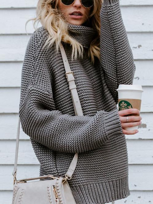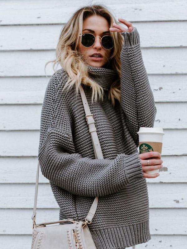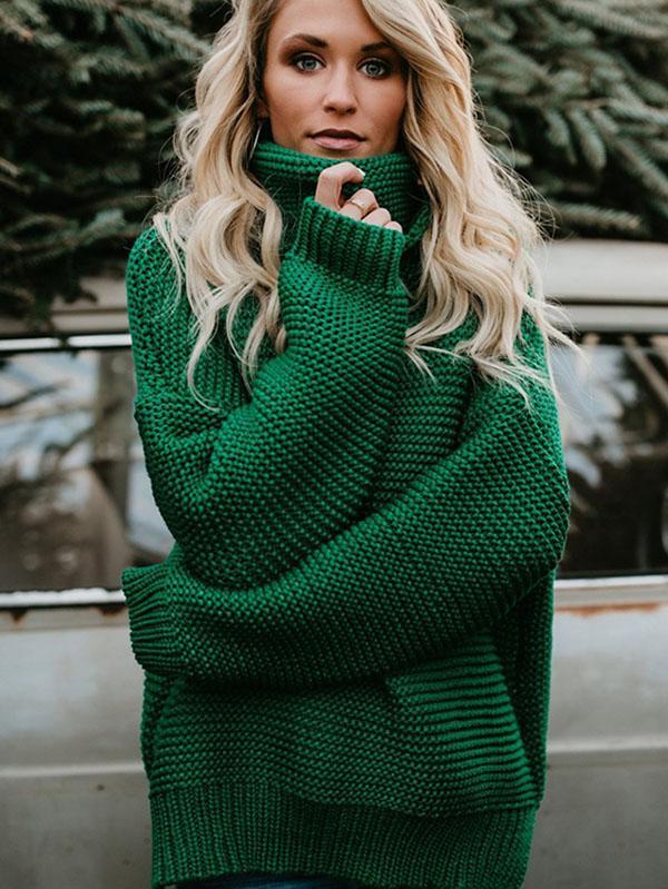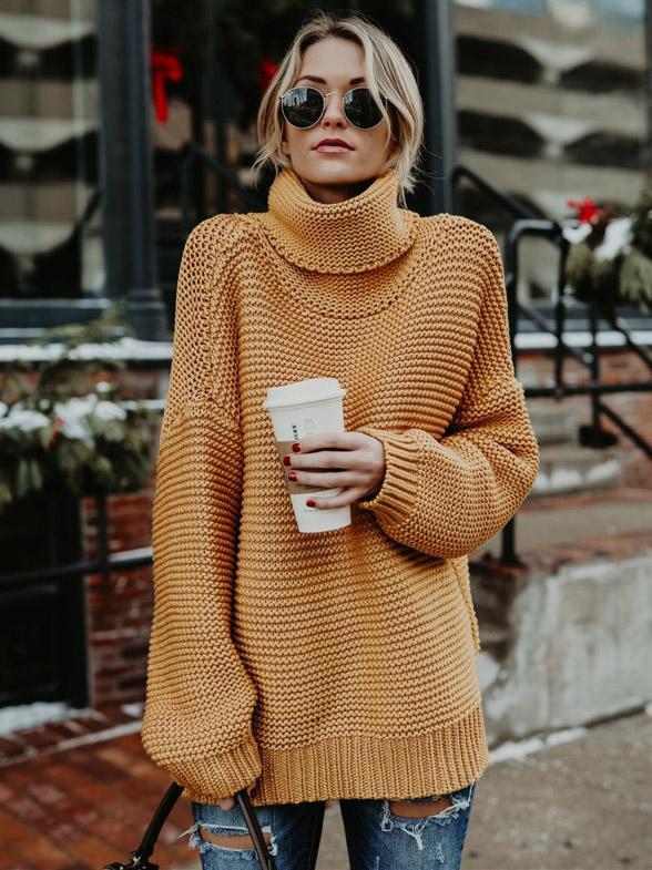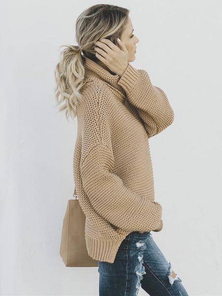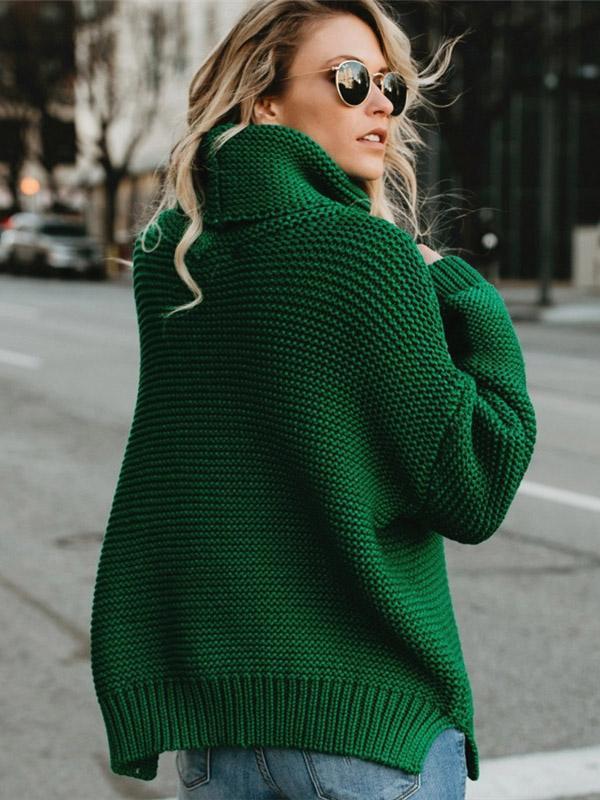 High-neck Long Sleeves Knitting Sweater Tops