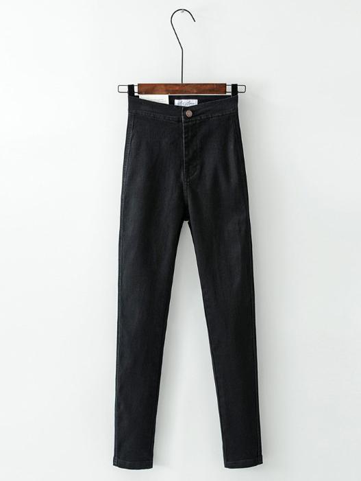 High-Rise Black Stretchy Casual Skinny Leg Pants