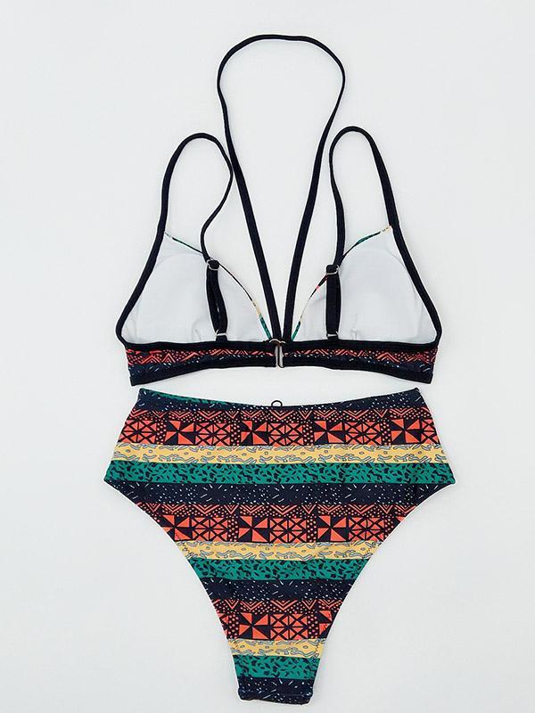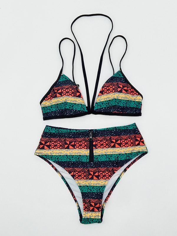 High Waist Striped Bikinis Swimwear