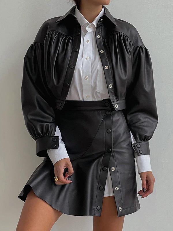 High Waisted Buttoned Ruffled Solid Color Split-Joint Skirts Bottoms