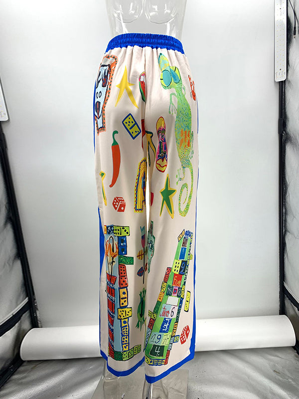 High Waisted Loose Asymmetric Printed Split-Joint Pants Trousers
