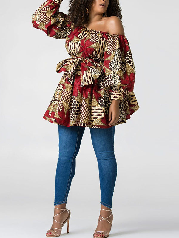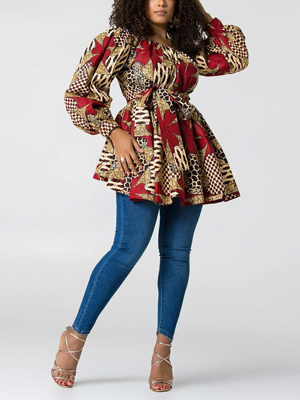 High Waisted Loose Elasticity Flower Print Tied Waist One-Shoulder Mini Dresses