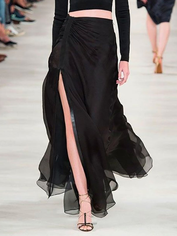 High Waisted Loose Solid Color Split-Joint Split-Side Skirts Bottoms