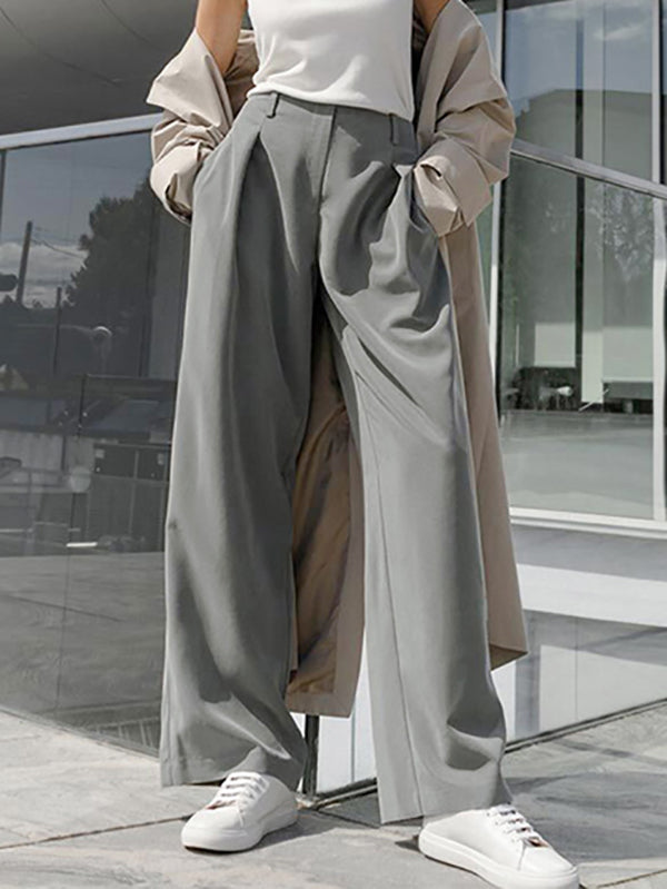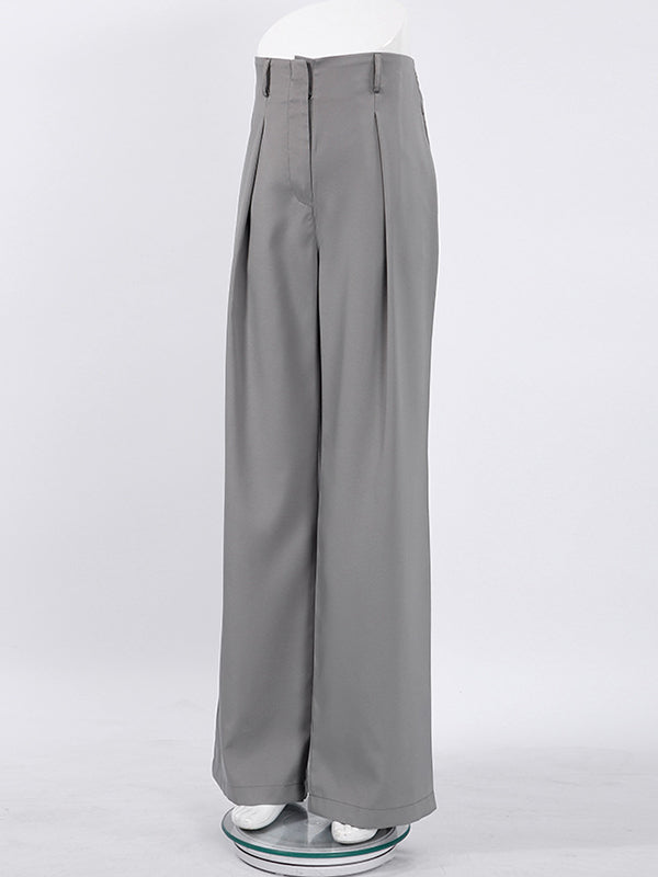 High Waisted Wide Leg Pleated Pockets Solid Color Suit Pants Trousers