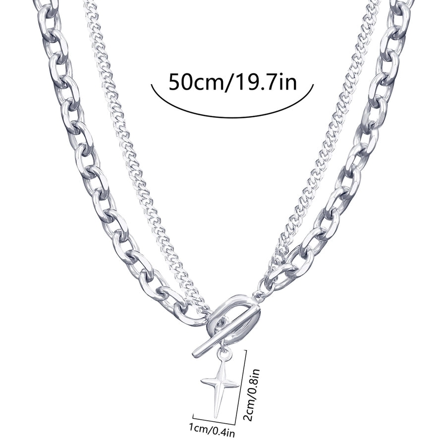 Hip-Hop Cross 304 Stainless Steel Toggle Men's Double Layer Necklaces