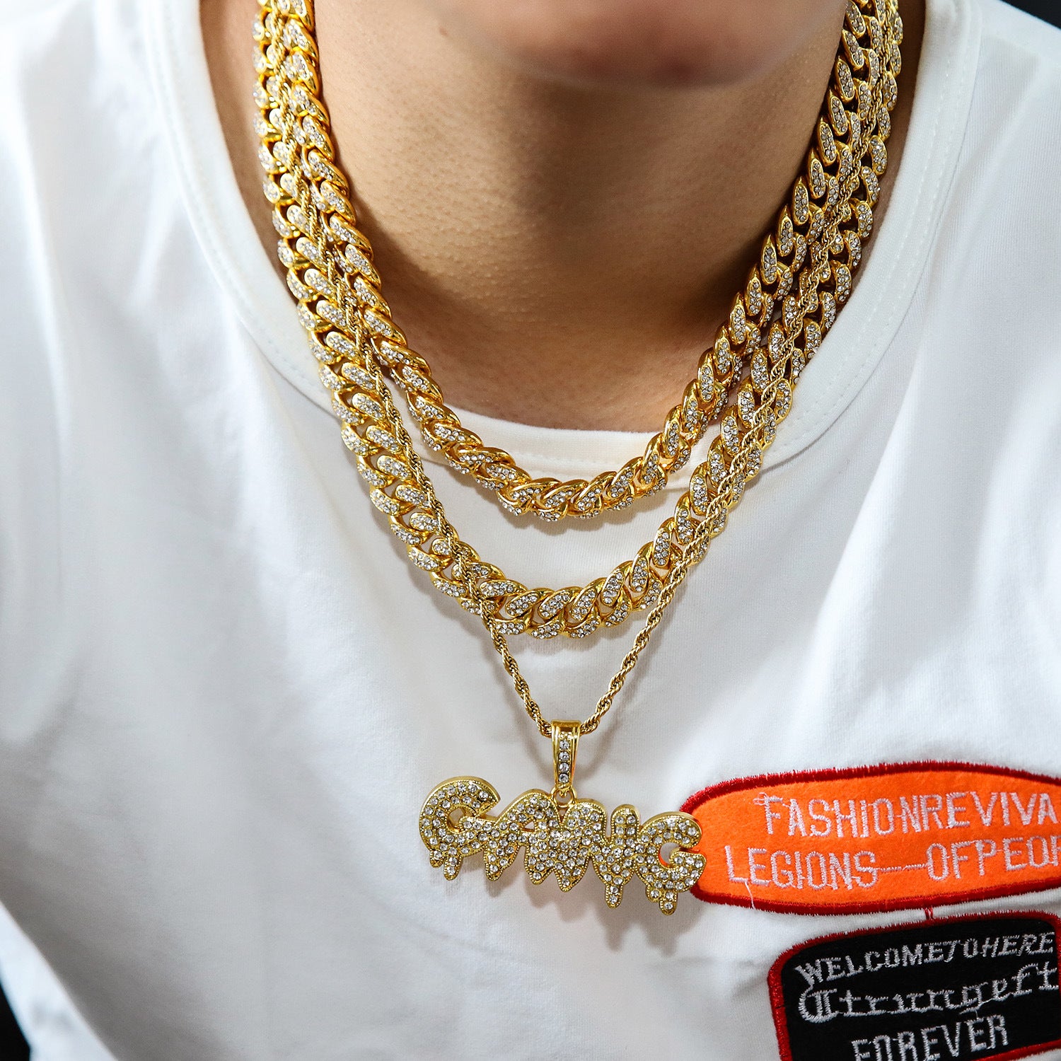 Hip-Hop Letter Rhinestones Alloy Twisted Rope Chain Pendant Necklaces