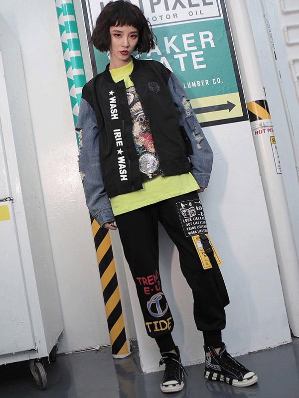 Hip-hop Split-joint Shredded Street Jeans Jacket