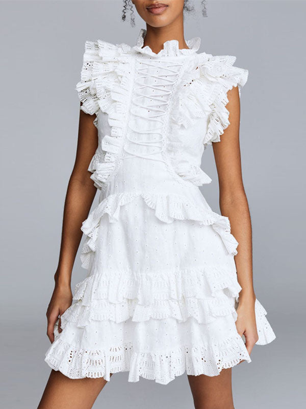 HOLLOW AGARIC LACY BANDAGE MINI DRESS