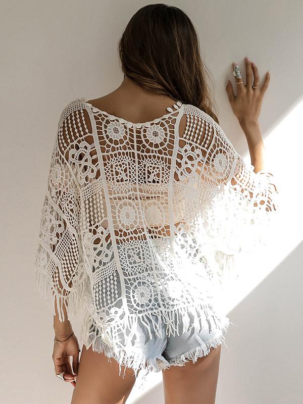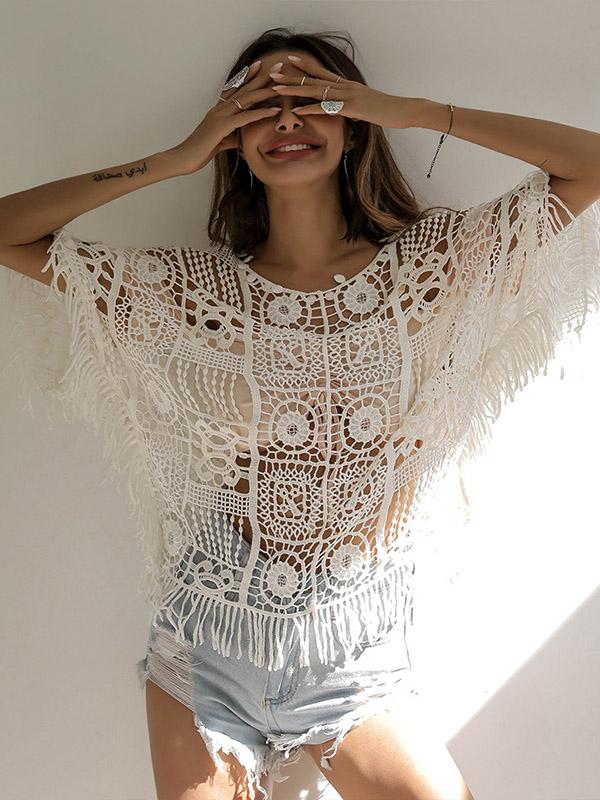 Hollow Batwing Sleeve Round Neck Cover Ups