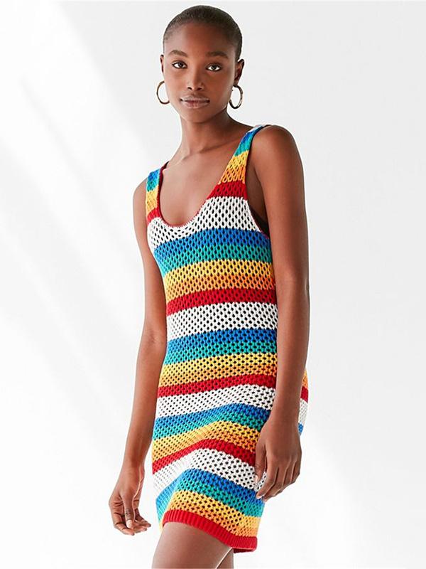 Hollow Colorful Beach Knitting Cover-ups Swimwear