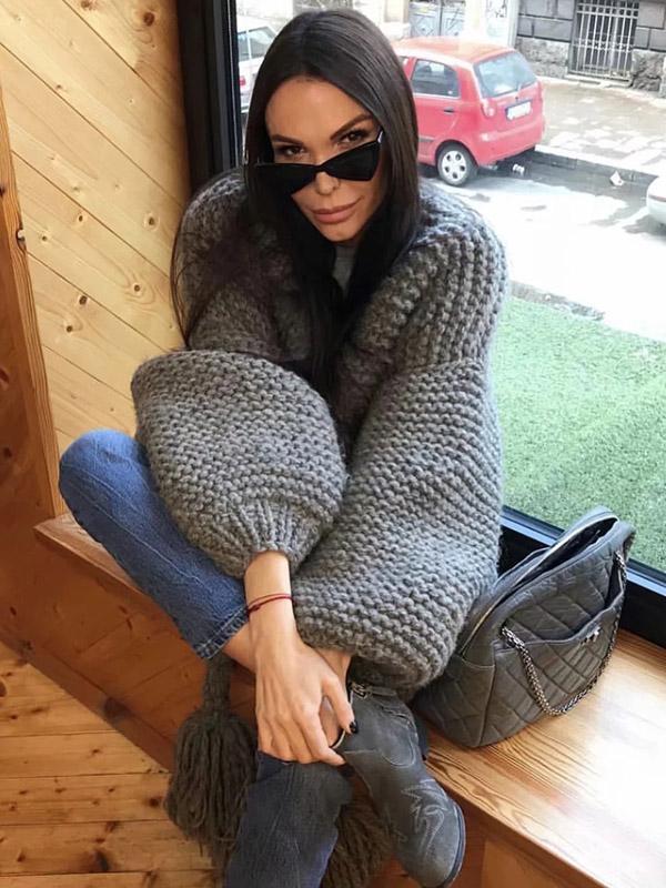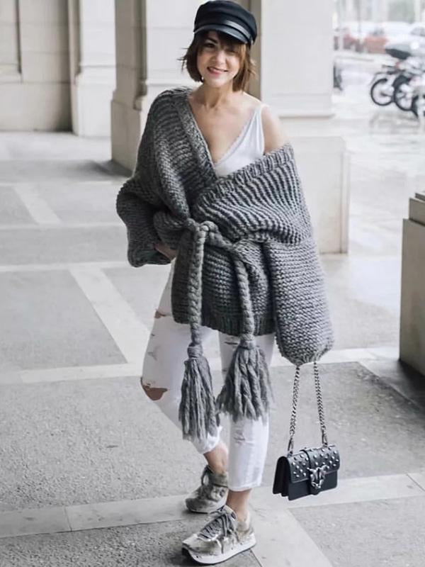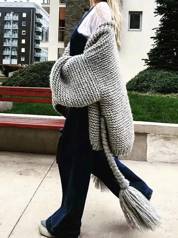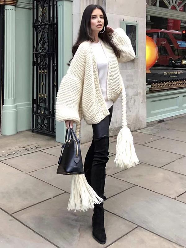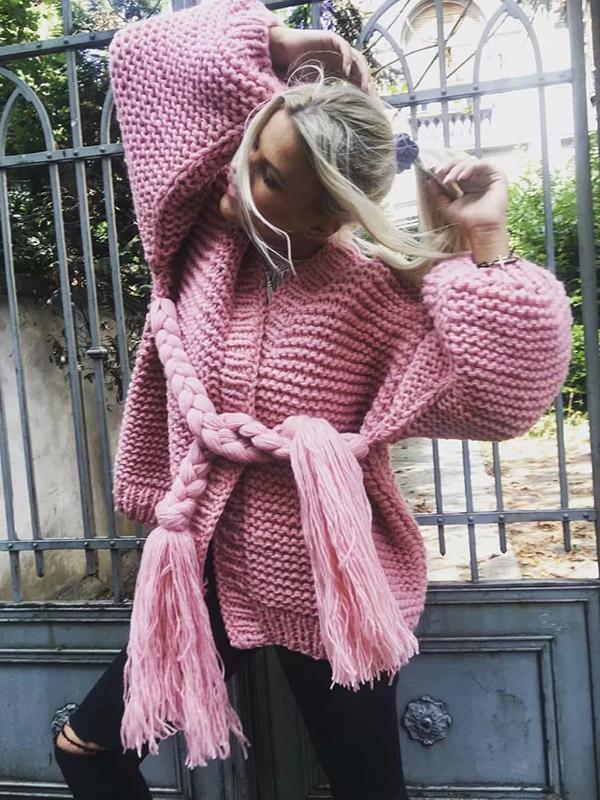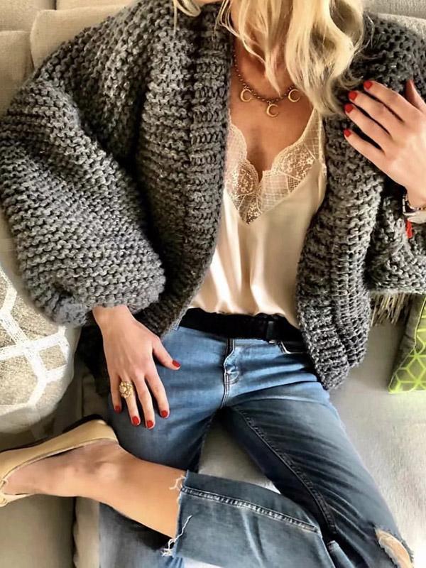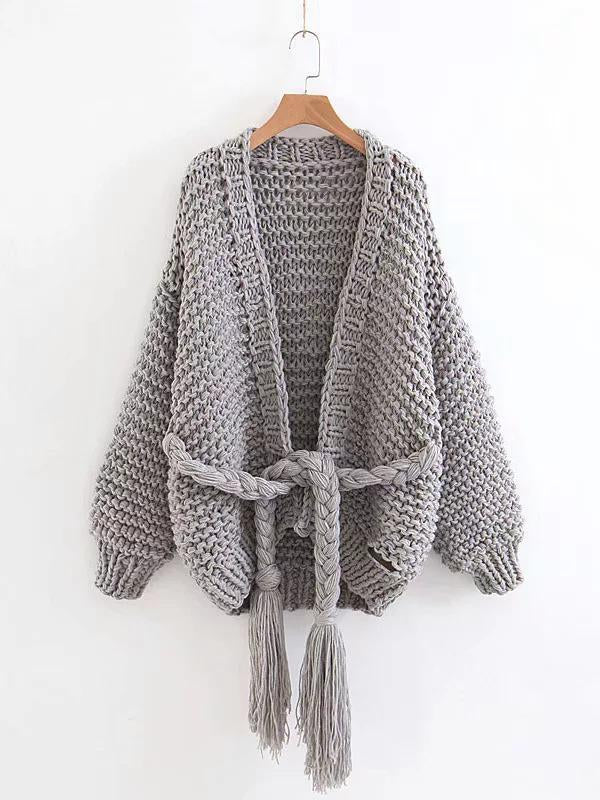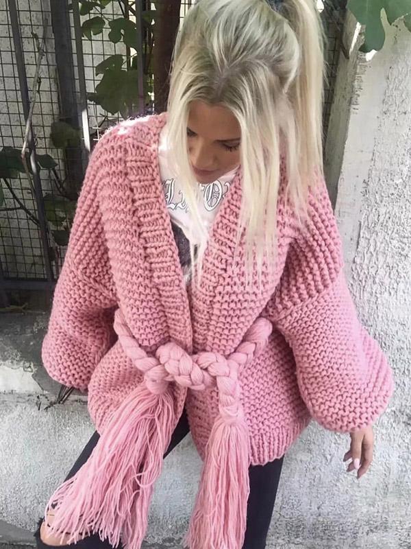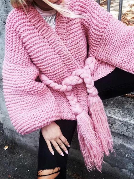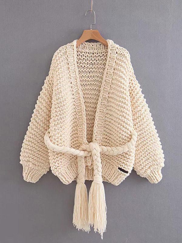 Hollow Knitting Bandage Long Sleeves Cardigan Tops