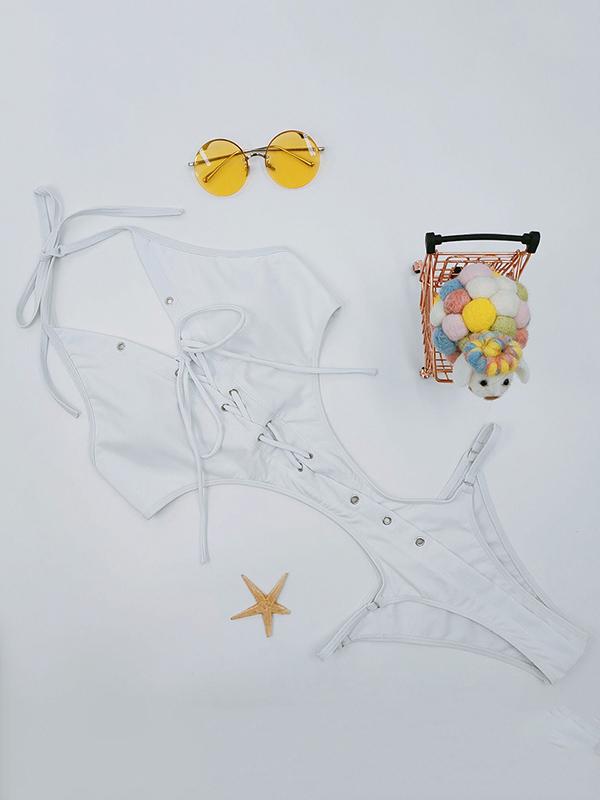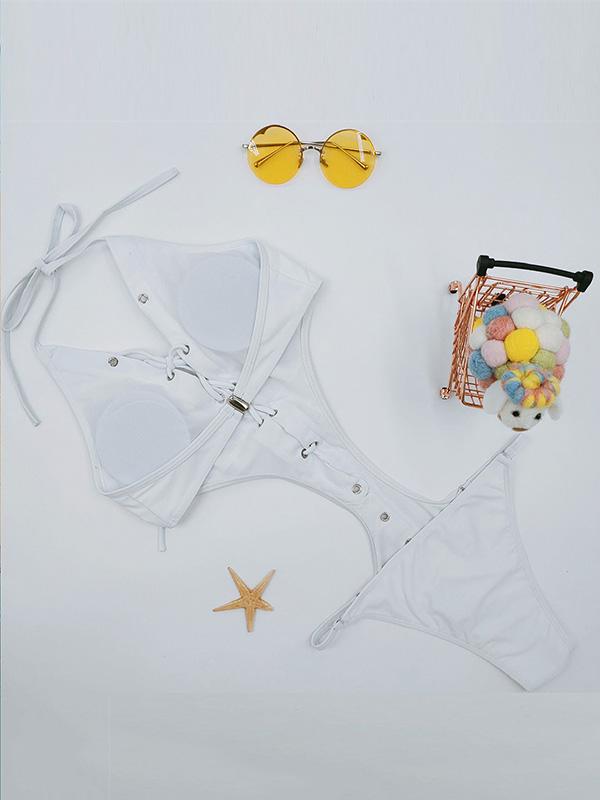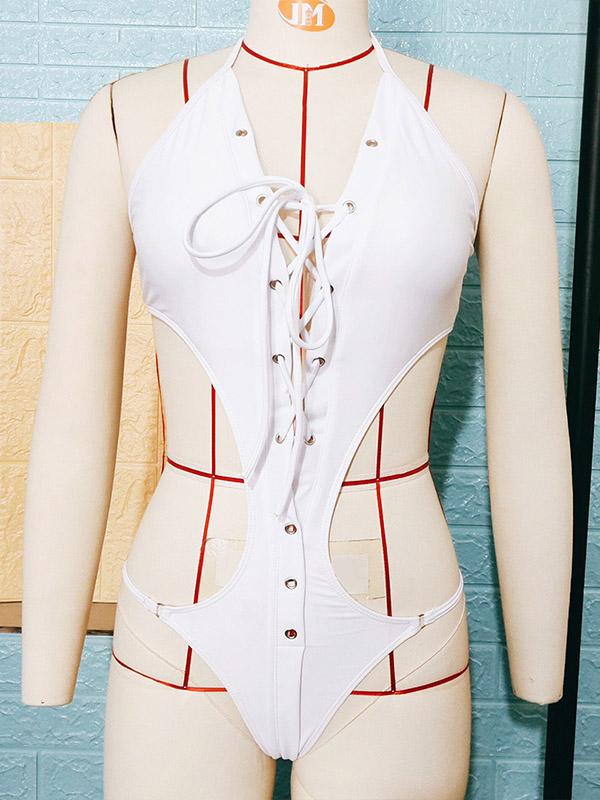 Hollow Lattice Plunging Sexy One Piece Swimsuit