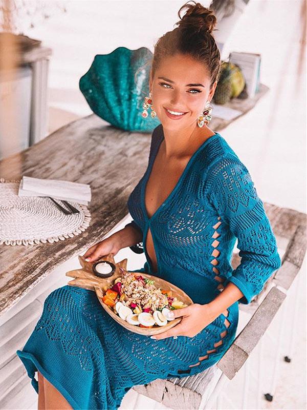 Hollow Sexy Knitting Beach Midi Dresses