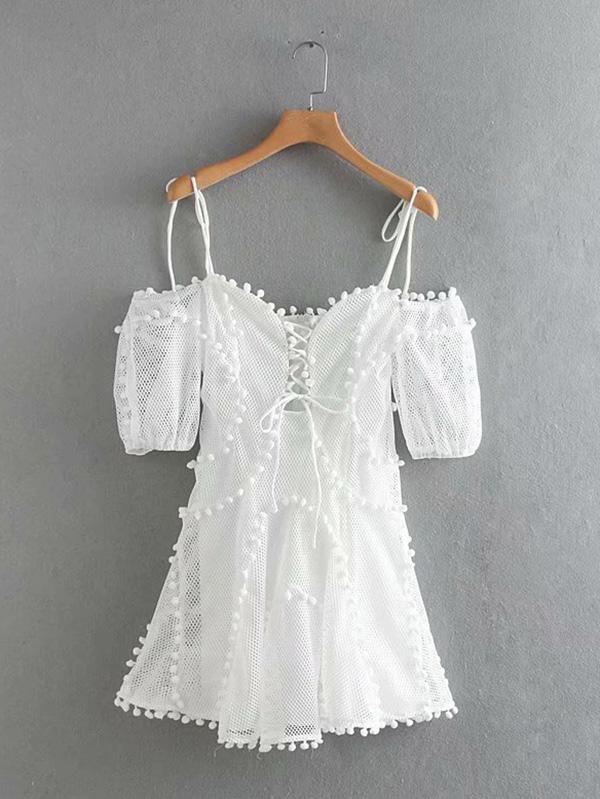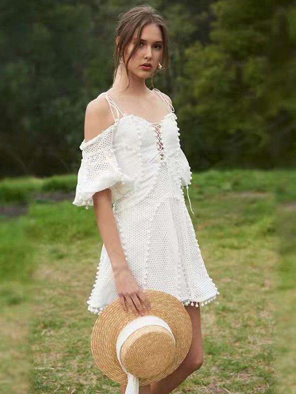Hollow Spaghetti-neck Mini Dresses