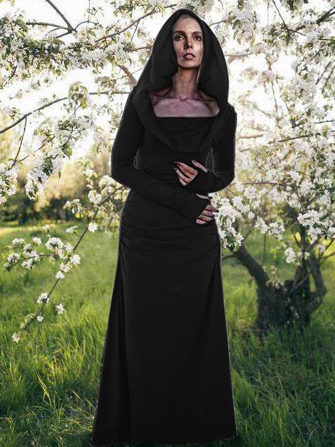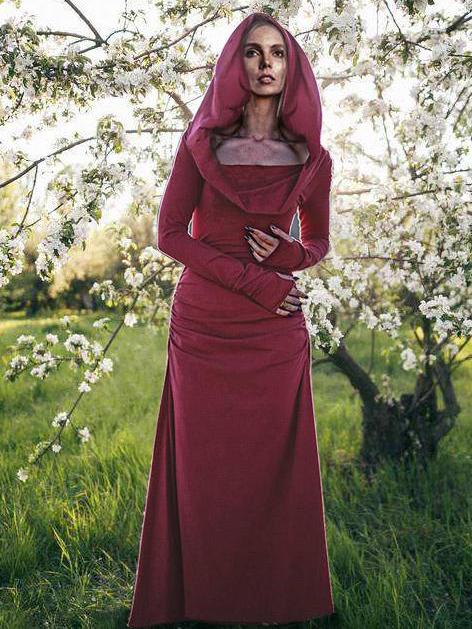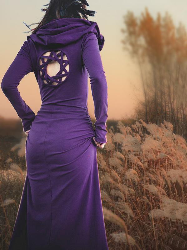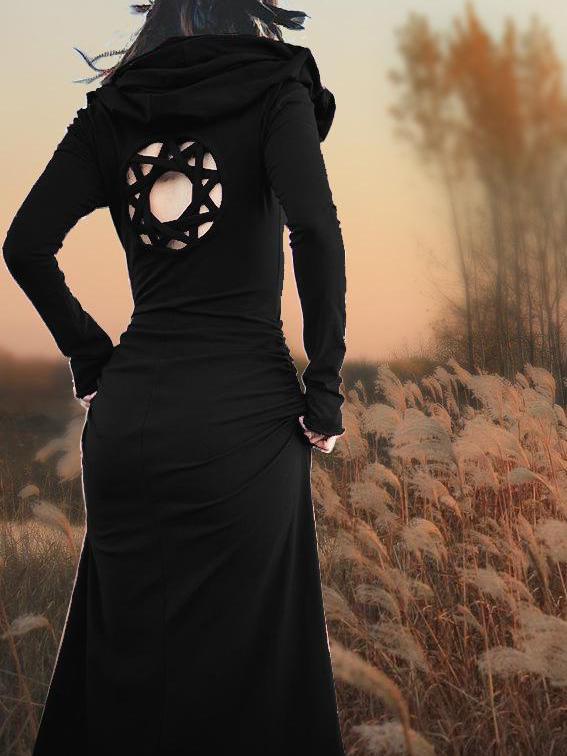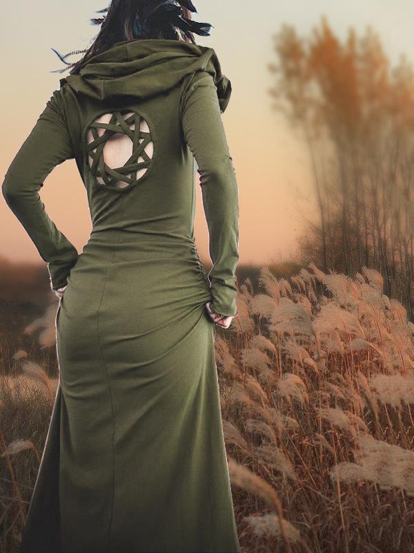 Hooded Backless Long Sleeved Maxi Forest Dress
