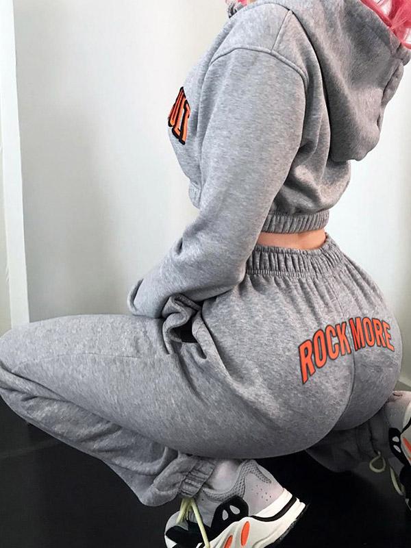 Hooded Cropped Long Sleeve Sweatershirts And Track Pants Suits